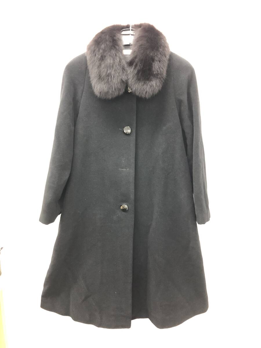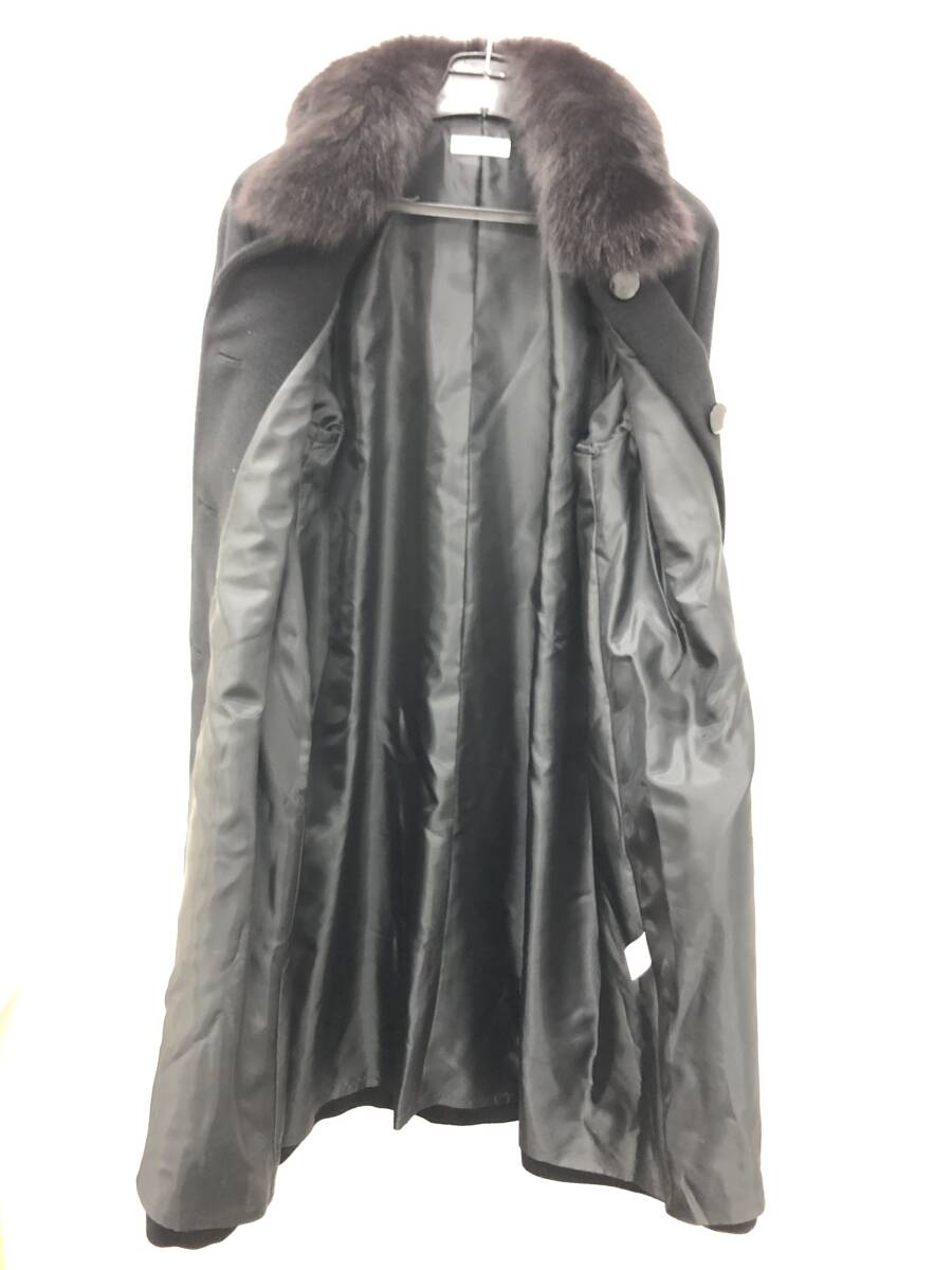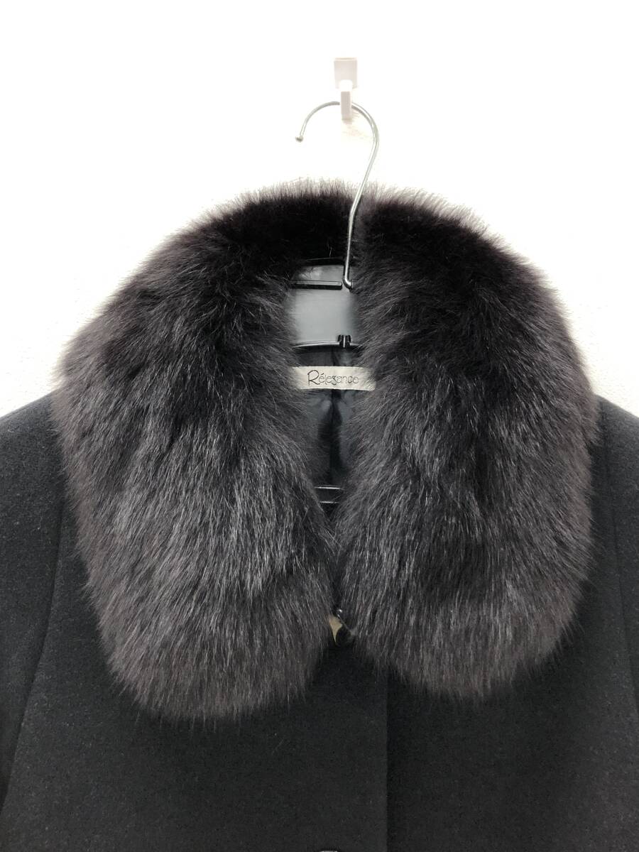 【襟取り外し可能】Relesance フォックスファー ウール アンゴラ混 ロングコート ブラック Mサイズ レディース アウター