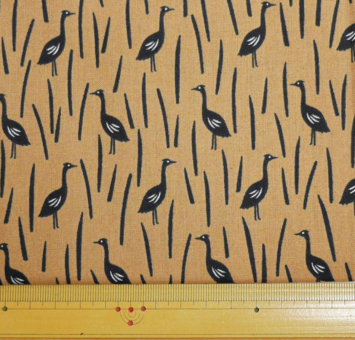 アメリカ 鶴 鳥 45×53 USAコットン s プリント生地 ブラウン はぎれ