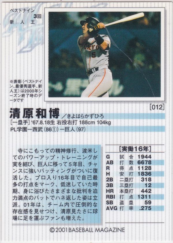 ●2001BBM 【清原 和博】 オールタイムヒーローズ No.012:巨人