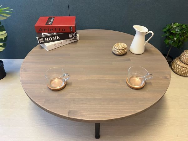 ◎上品な木目が特徴の、パイン材を天板に使用した丸型ローテーブルです。(真円では御座いません!)