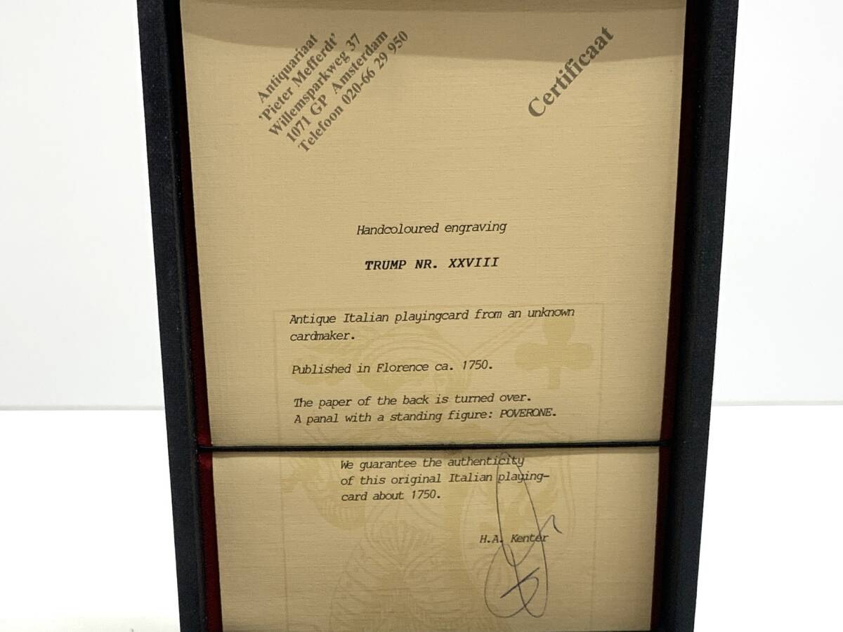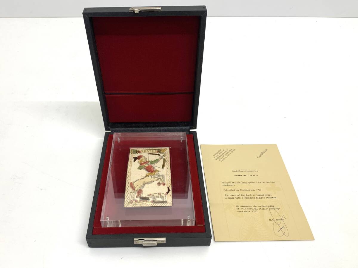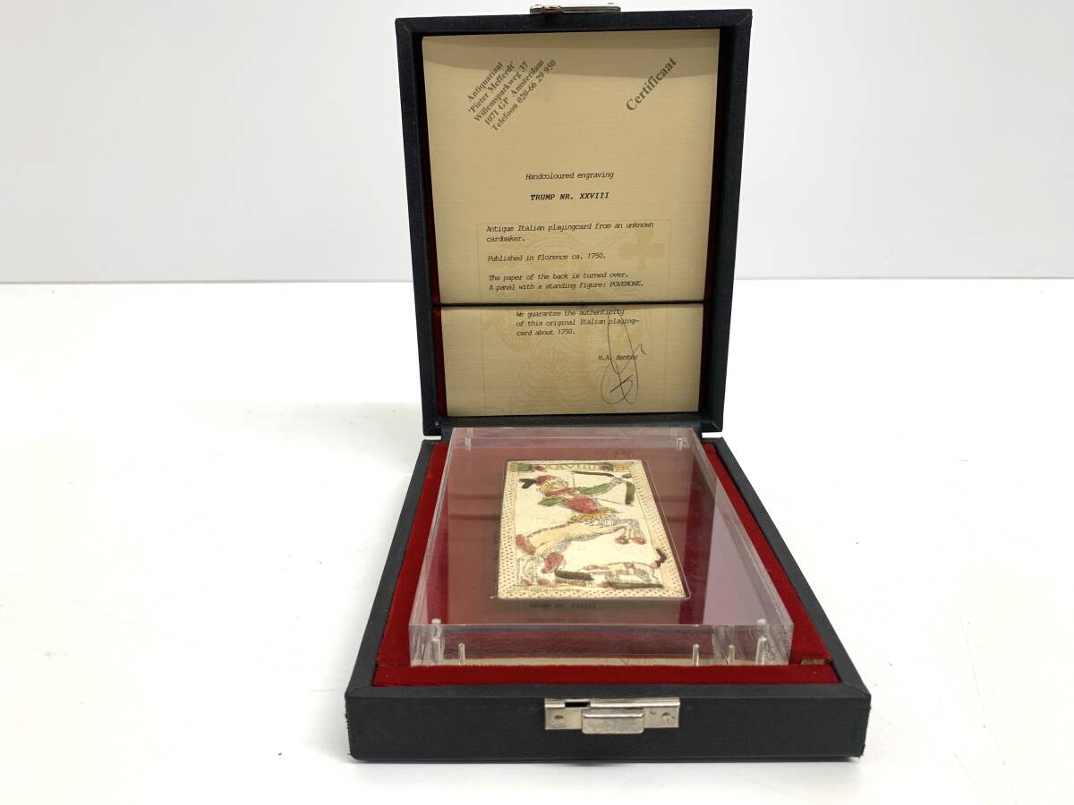 ◆268 Italy Firenze 1750年 ガラス装飾されたトランプ カード ヴィンテージ アンティーク 手彩色彫刻 POVERONE 証明書付き箱入り 作者不明