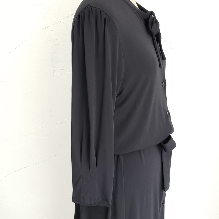 | 商品説明 | ・前ボタン ボウタイ ロングワンピースです。 ストレッチがあり、薄手の透け感がある 七分袖 デザインです。 ウエストをヒモで絞ると雰囲気が変わります。 ・素材 品質表示タグなし ※ ストレッチ素材 ・カラー ネイビーがかったブラック系(画像参照) ・付属品 なし ・サイズ 2 ※ Mサイズ程度 実寸をご参照ください 着丈 約104.0cm(襟の付け根から裾までの寸法 中央部) 身幅 約45.5cm (胸囲・脇下間の寸法) 肩幅 約37.0cm 袖丈 約48.0cm ・商品コンディション 内側の品質表示タグが切られています。 前身頃正面から見て左肩付近に点状の引っ張り部分があります。(よく見ないとわかりにくいです 画像参照) その他軽い着用感がありますが、まだまだご愛用いただける良いコンディションです。(画像参照) ※個人保管商品ですので、店舗コンディションをお求めの方はご入札をお控えください。ご理解の上ご入札お願いいたします。 |