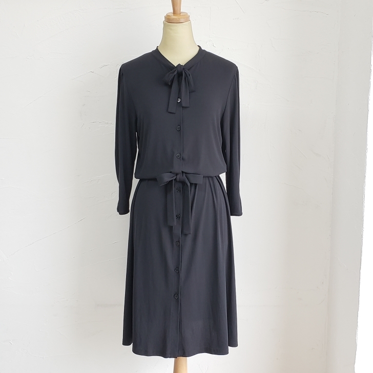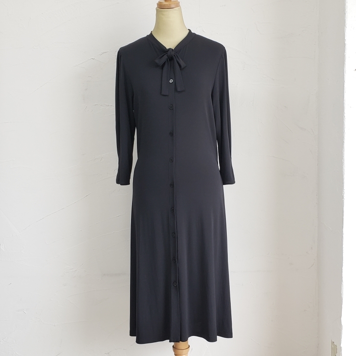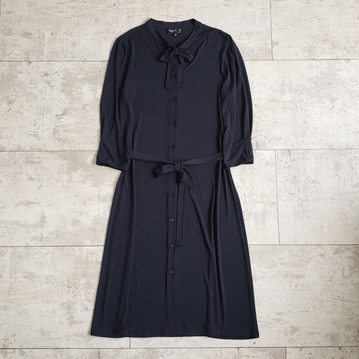 | アニエスベー ロング ワンピース 2 ブラック 前ボタン ストレッチ 七分袖 薄手 agnes b. | |