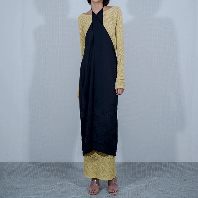 TANの23SS 日本製 SIGNATURE PATTERNED TWIST DRESS&CROPPED TEE(TN23SS023)です。