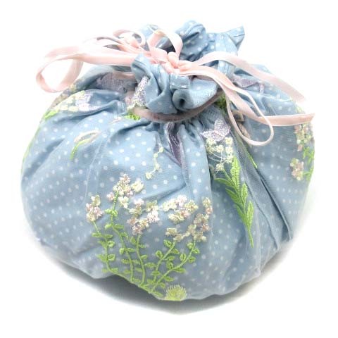 未使用品 フランシュリッペ franche lippee ガーデニング ころりん BAG バッグ 巾着 チュール ドット スカイブルー
