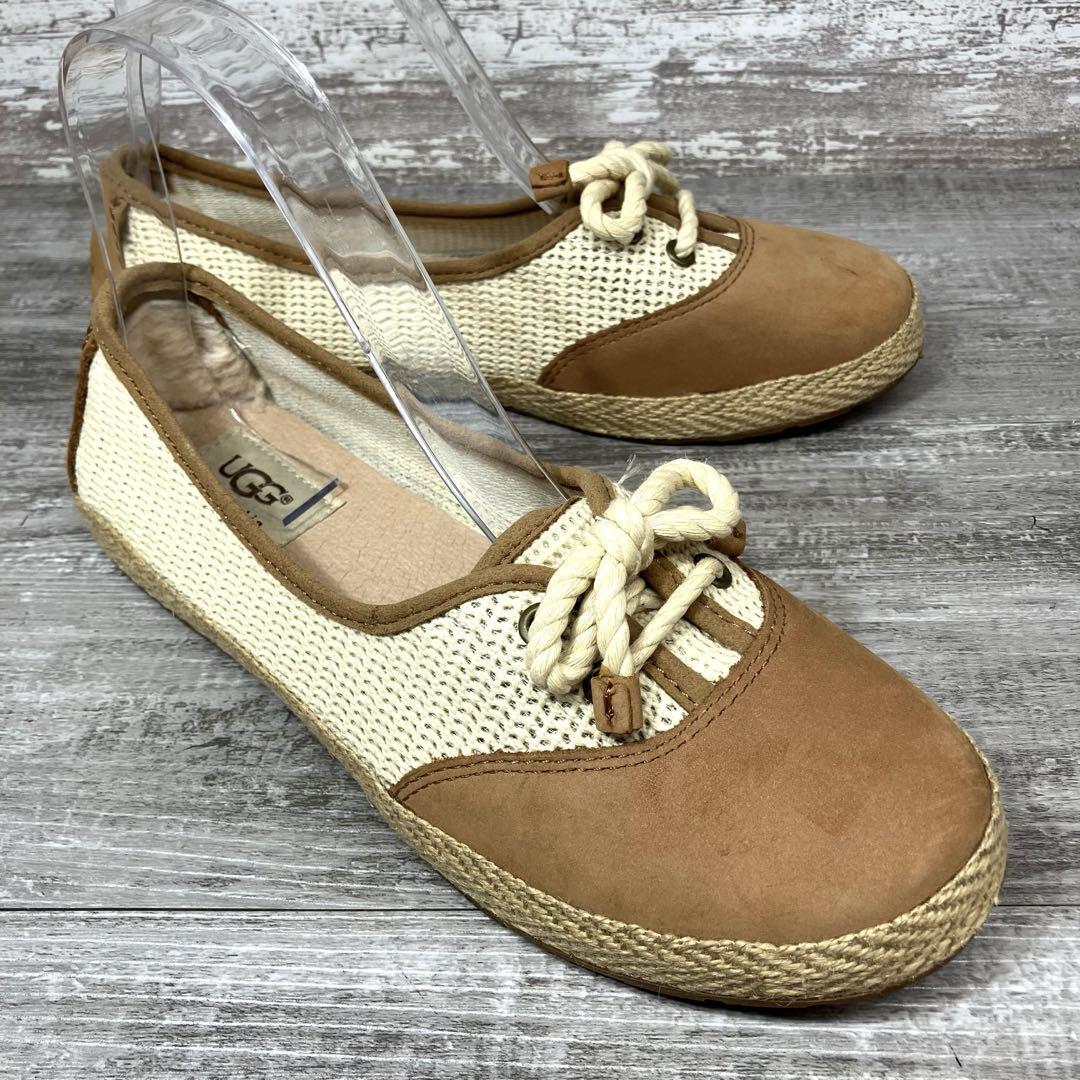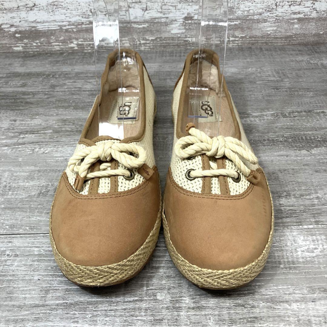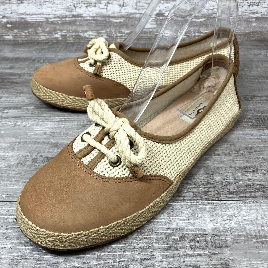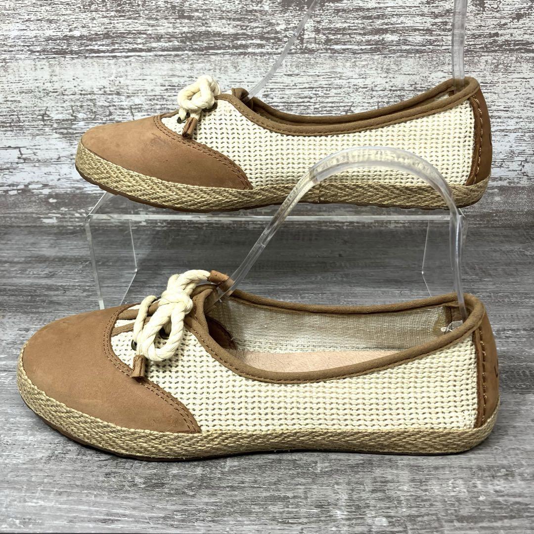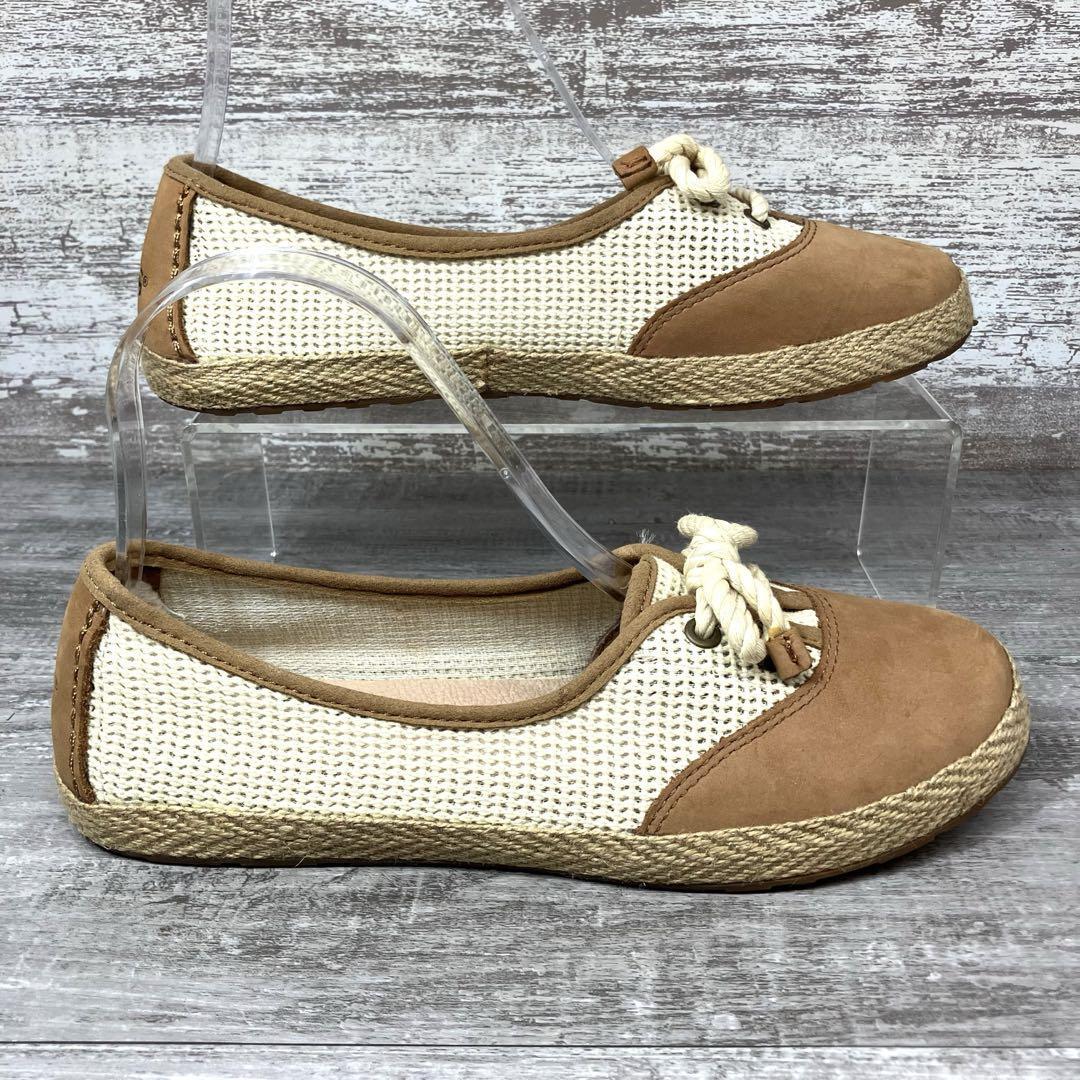 47【極美品】UGG アグ モカシン フラットシューズ 茶色 ブラウン スエード メッシュ エスパドリーユ エスパデュール23.0cm程 ジュートスニーカー US6