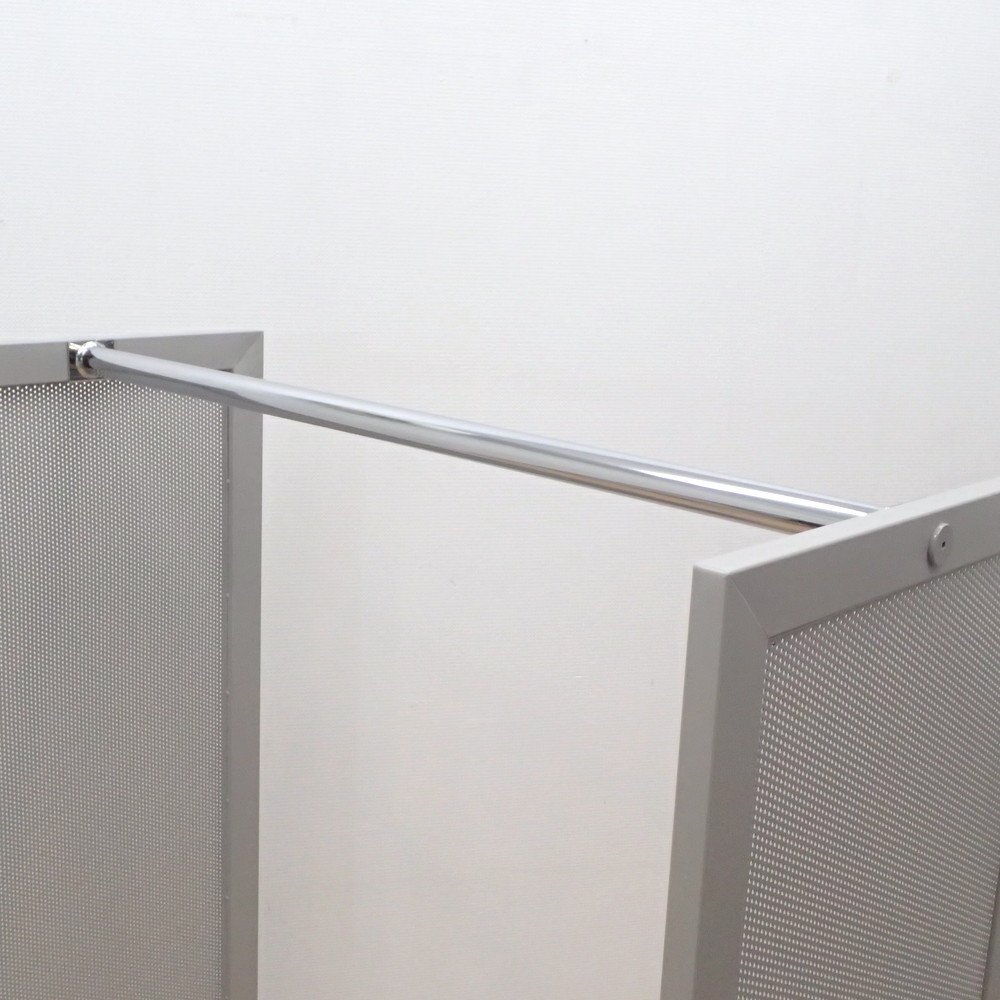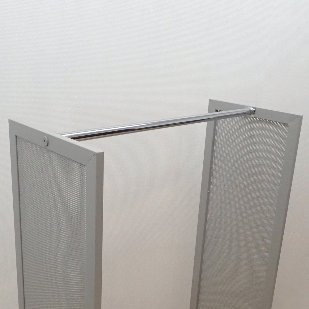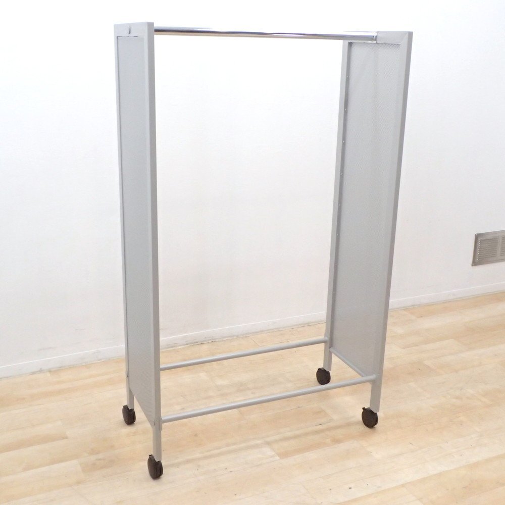 移動式の便利な業務用パイプハンガー。 すばやくキャスターを動かし移動しても、掛けた服が落ちずに安全に運べます。 頑丈なスチール製で、両端はパネルとなっており、空間仕切りの役割まで担ってくれます。 シンプルデザインで、武骨でモダンな空間におすすめできる都会的な雰囲気。 ぜひ、流れのはやい撮影現場や衣装関連の業務に!人とかぶりたくない個性派の方にもおすすめです、ぜひ! |