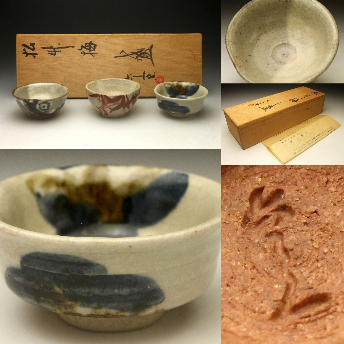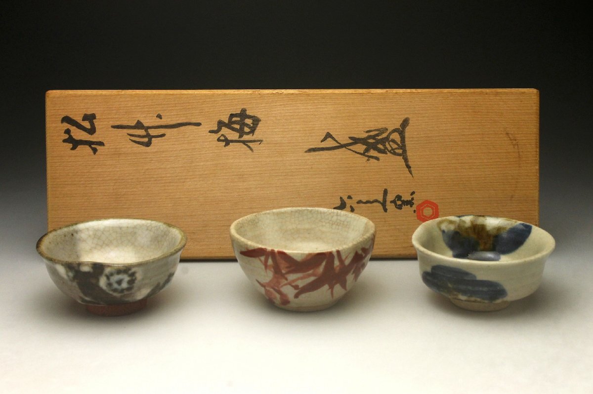 【余韻】 清水焼 京焼 清水六兵衛 六兵衛窯 松竹梅 盃 3点セット★ぐい呑み 栞 共箱 無傷美品<同梱可>