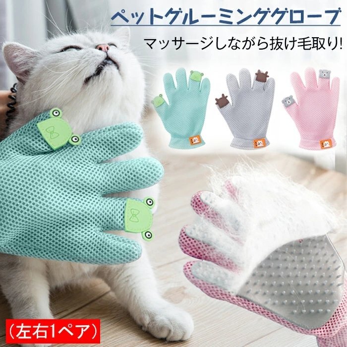 ペット ブラシ グローブ (左右1ペア) グルーミンググローブ ペット 抜け毛 手袋 トリミング グローブ 毛玉取り猫 ☆3色選択/1点