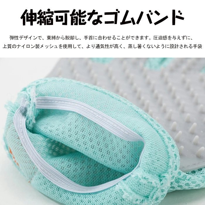 調整可能リストストラップ】通気性と柔軟性、すべての手のひらサイズに適したペットマッサージコームグローブ、ペットをマッサージするときに落ちるのは簡単ではありません