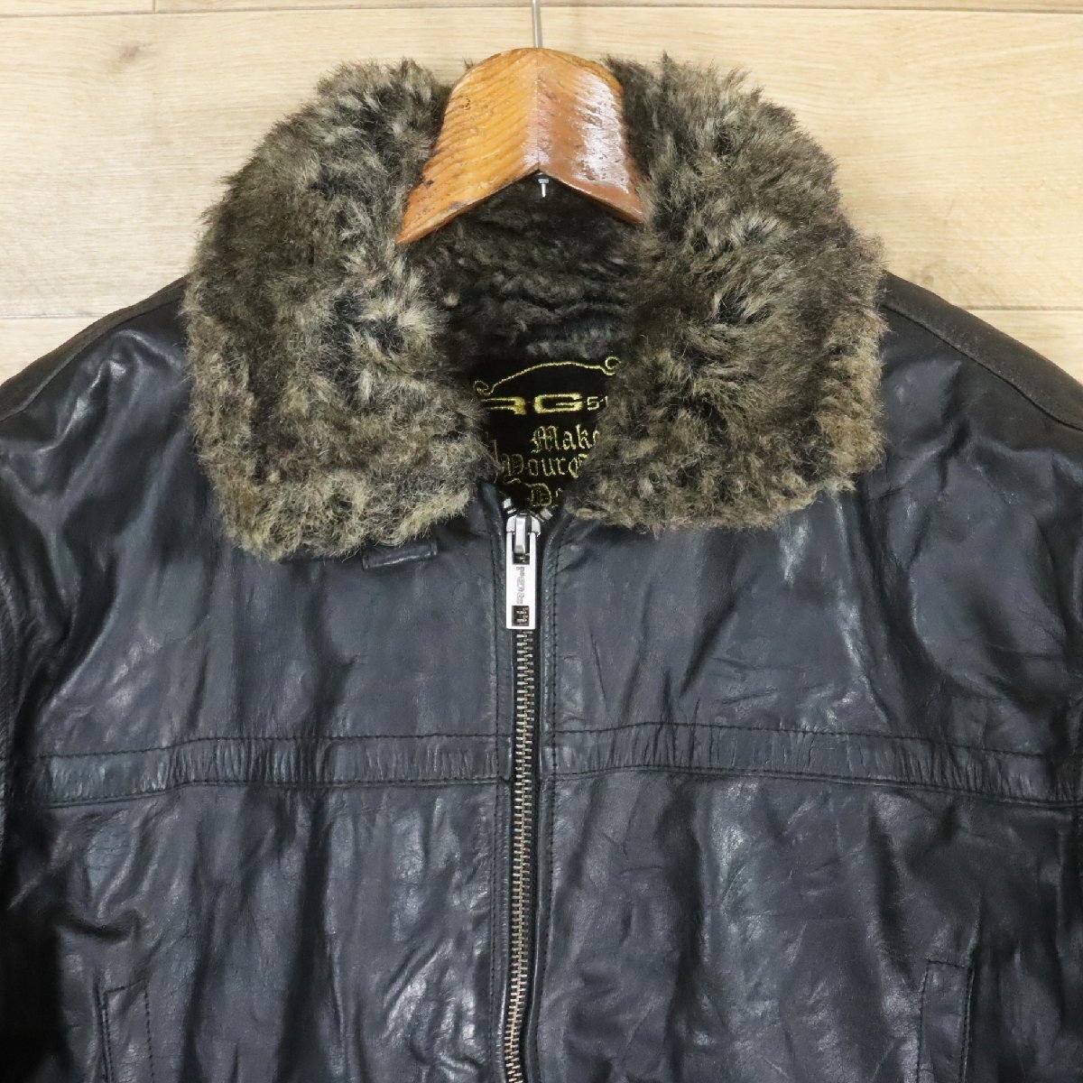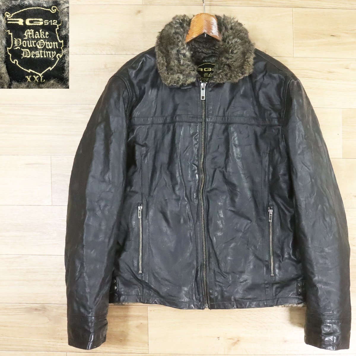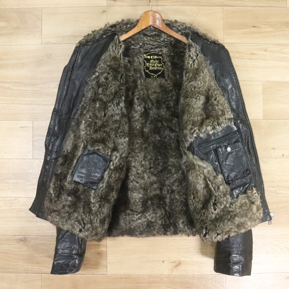 J5S/Y8.12-4 RG 512 MAKE YOUR OWN DESTINY 襟ボア レザージャケット 本革 ライダース 裏ボア ブルゾン XXL 革ジャン 皮ジャン