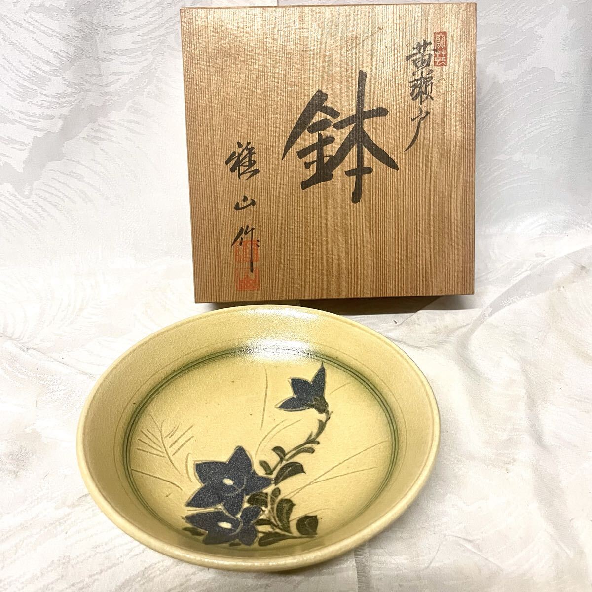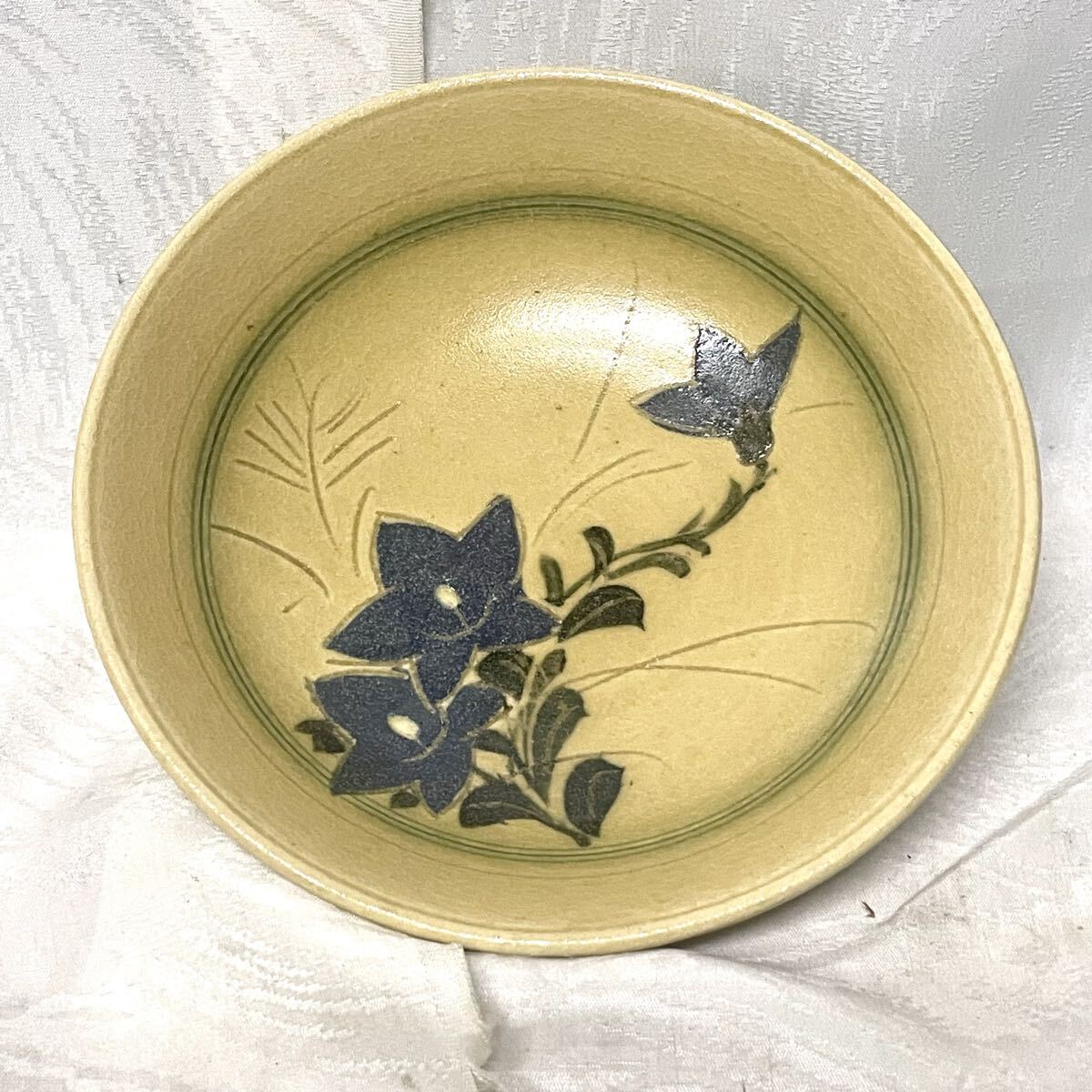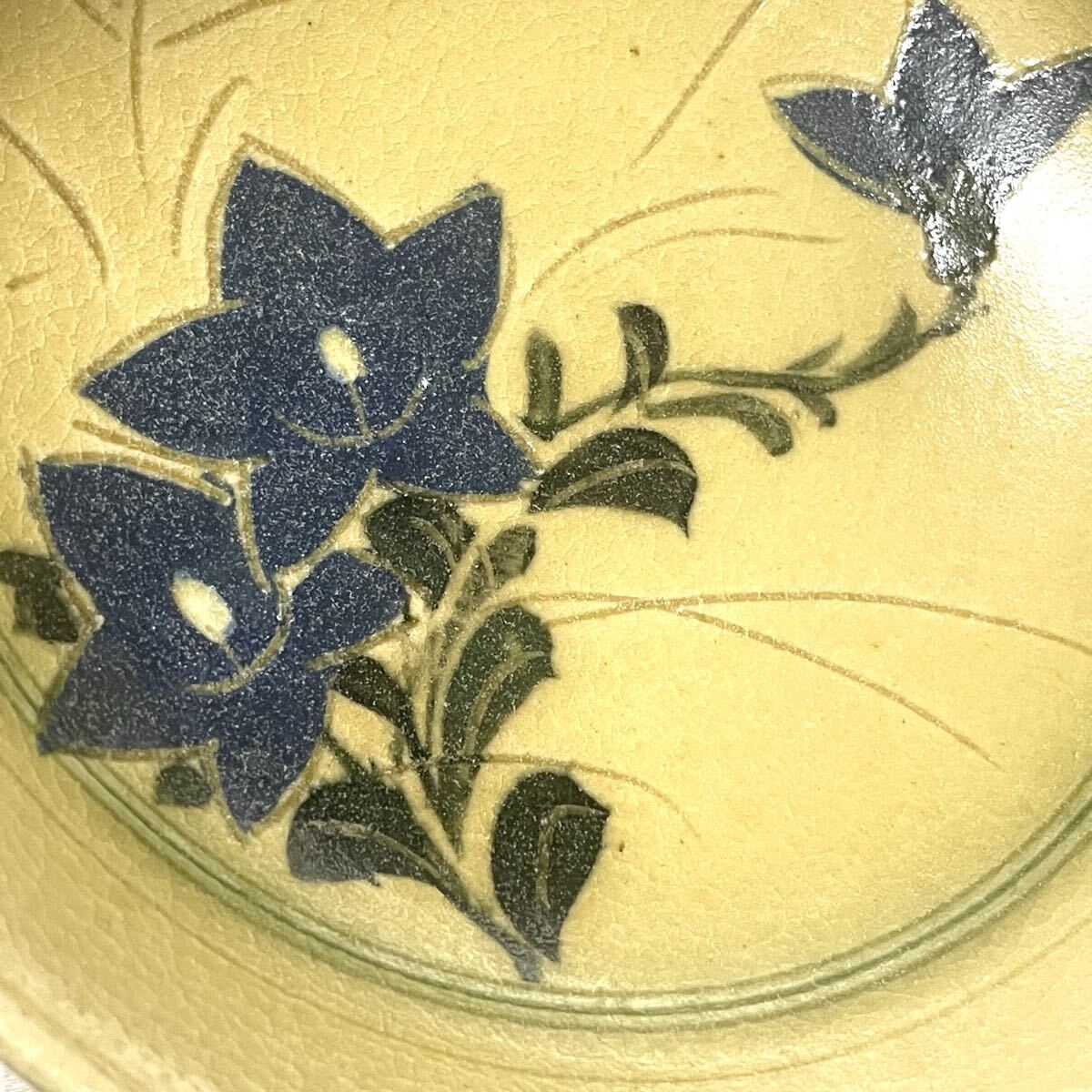 【雅山 作】黄瀬戸 鉢 桔梗柄 菓子器/菓子鉢