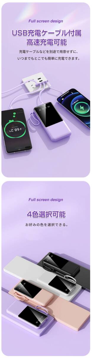★5台同時急速充電 薄型モバイルバッテリー 小型 携帯便利★急速充電・災害対策★4種ケーブル内臓