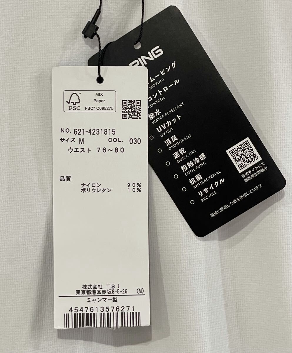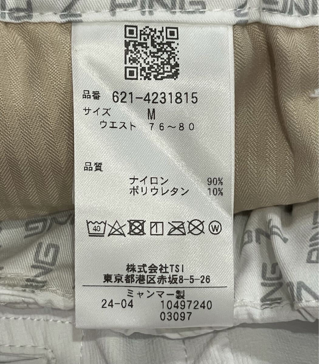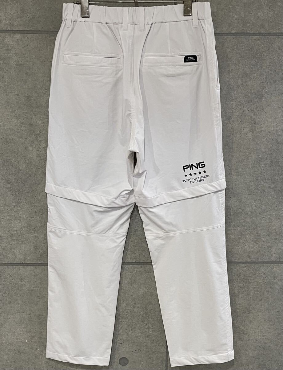 新品タグ付き PING ピン 2WAY ストレッチ ゴルフパンツ ロゴプリント ホワイト Mサイズ メンズ ゴルフウェア ◯ 新規×