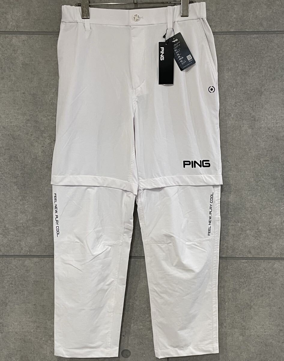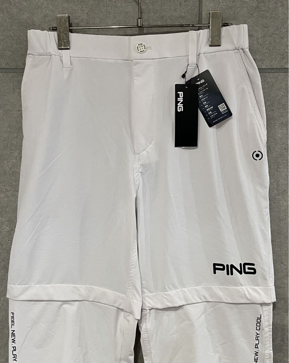 新品タグ付き PING ピン 2WAY ストレッチ ゴルフパンツ ロゴプリント ホワイト