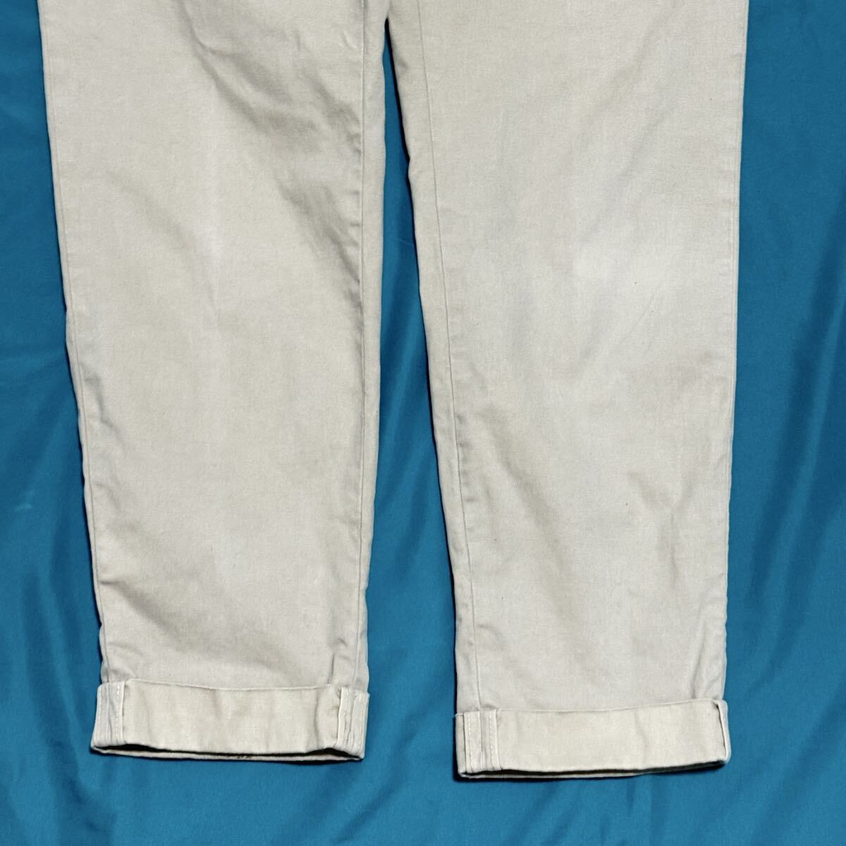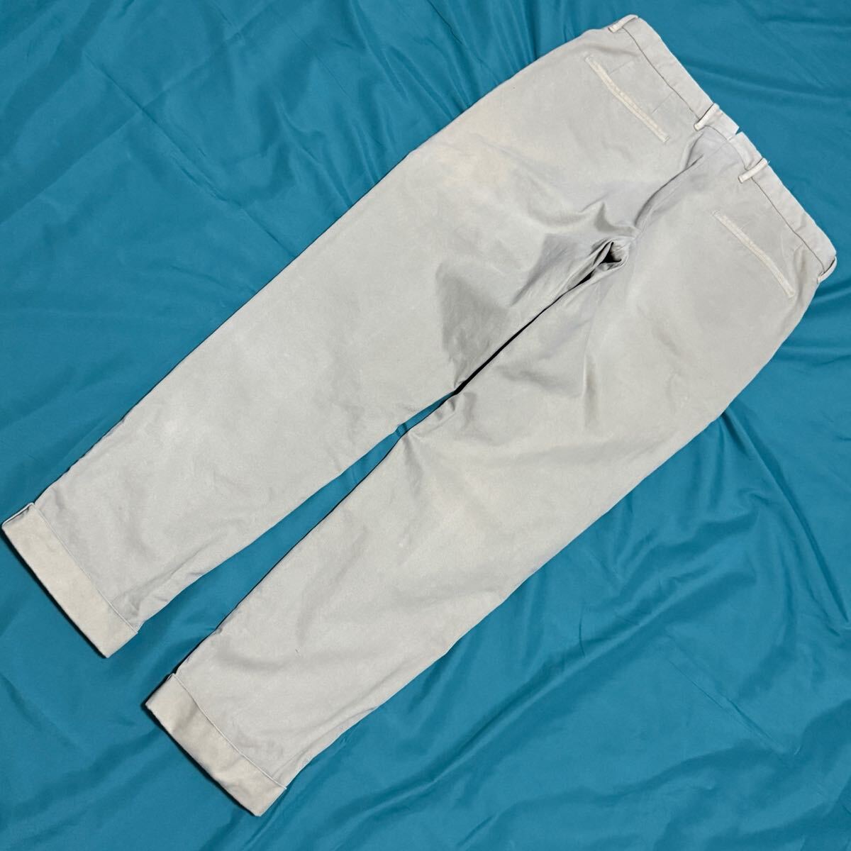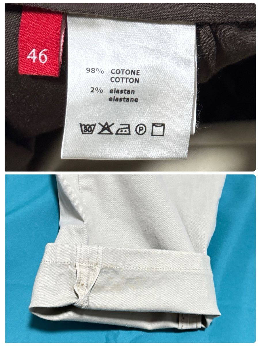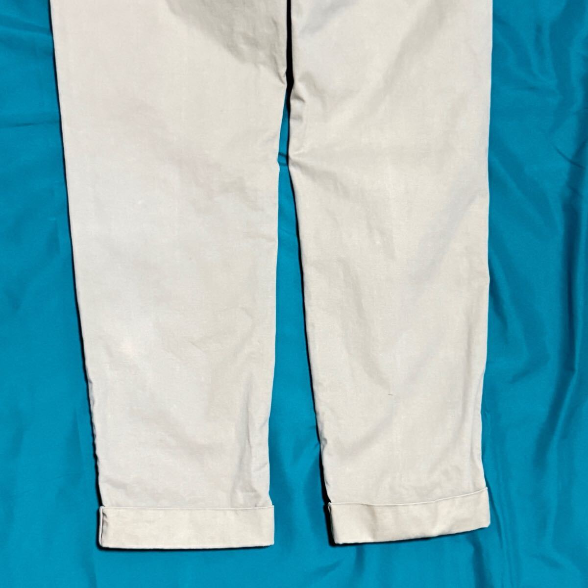 イタリアブランド「GTA」の人気モデル、IL PANTALONEスリムチノパンツです。サイズ46、ベージュカラー。上質なコットン98%・ポリウレタン2%素材で、快適な穿き心地と美しいシルエットを実現。裾はダブル仕上げでロールアップスタイルも可能。ビジネスからカジュアルまで幅広く活躍できる一本です。薄いシミはありますが、全体的に良好なコンディションです。