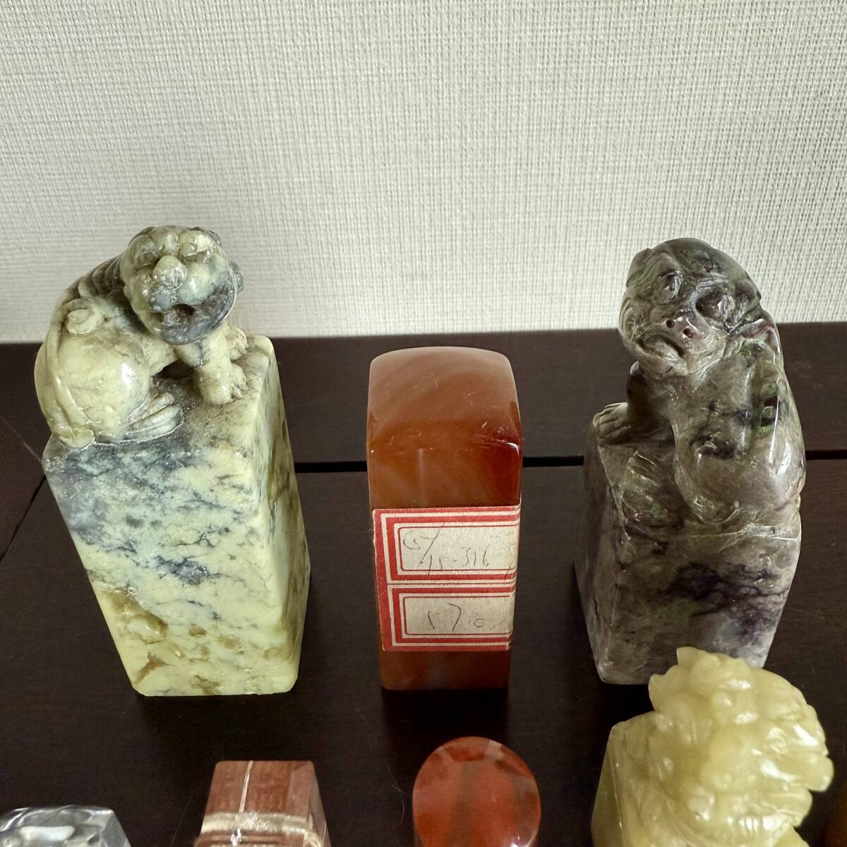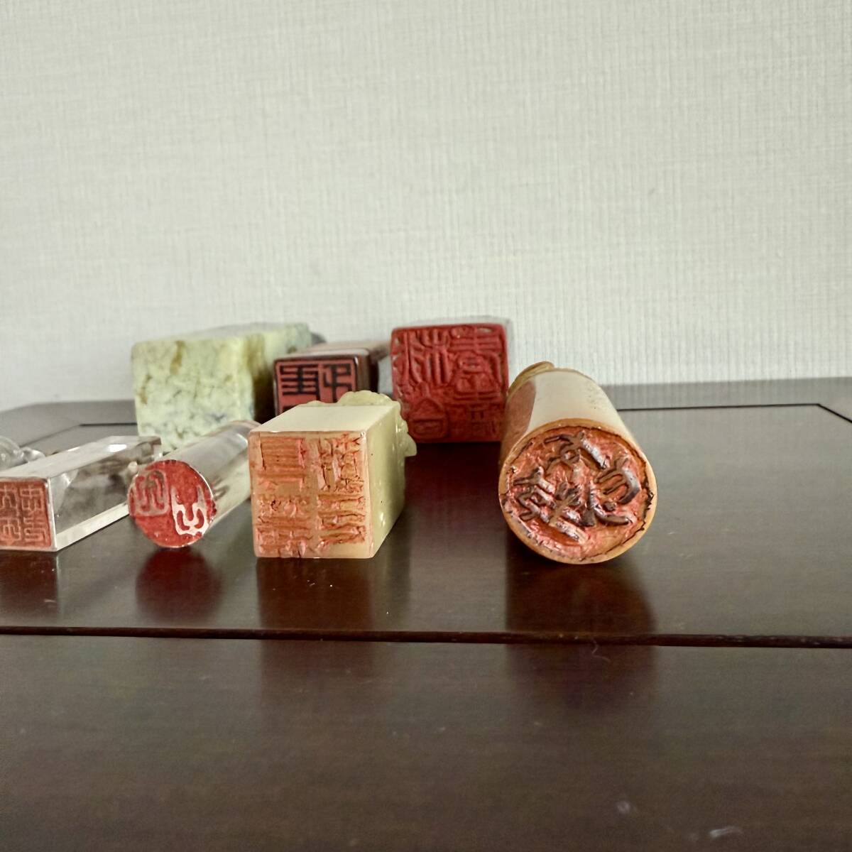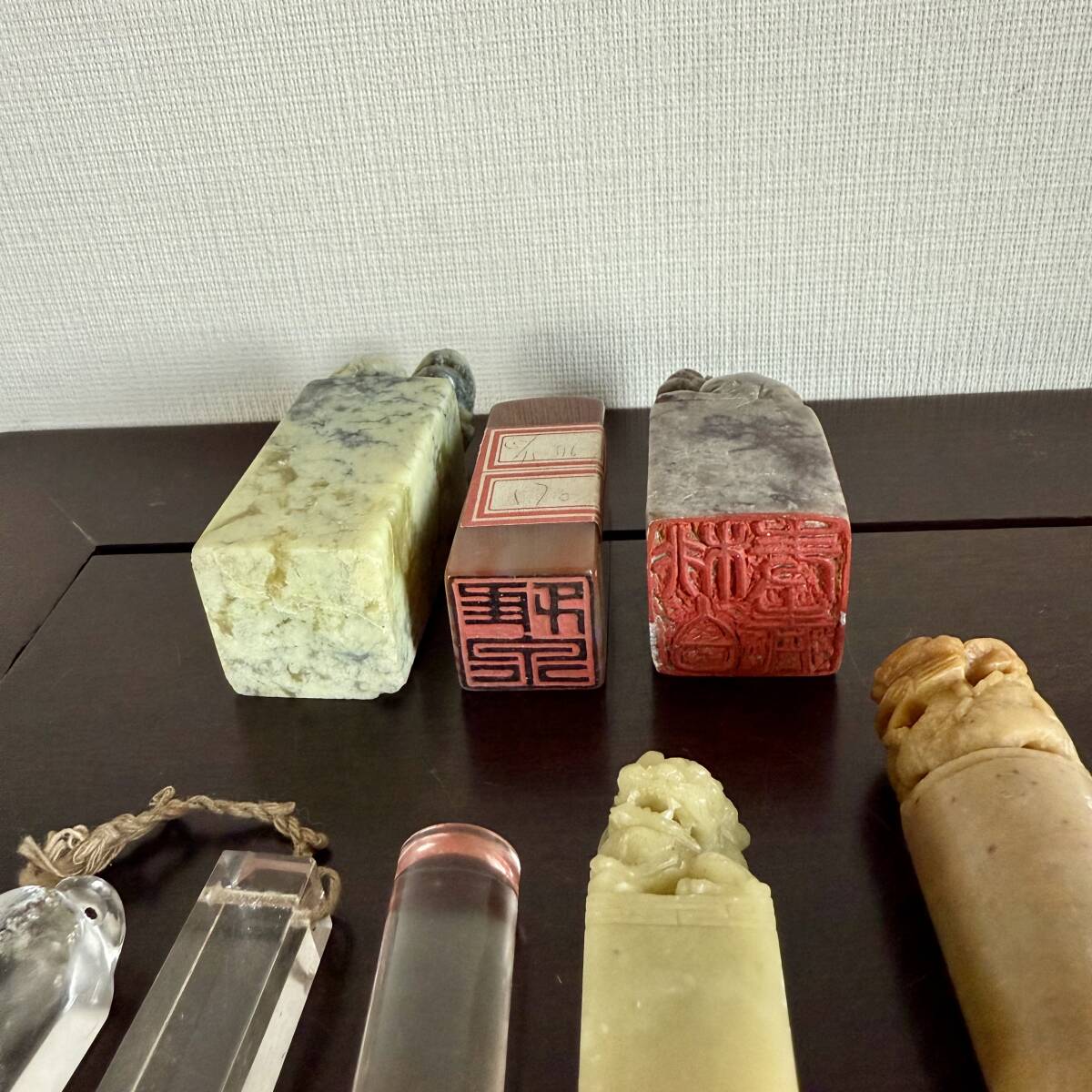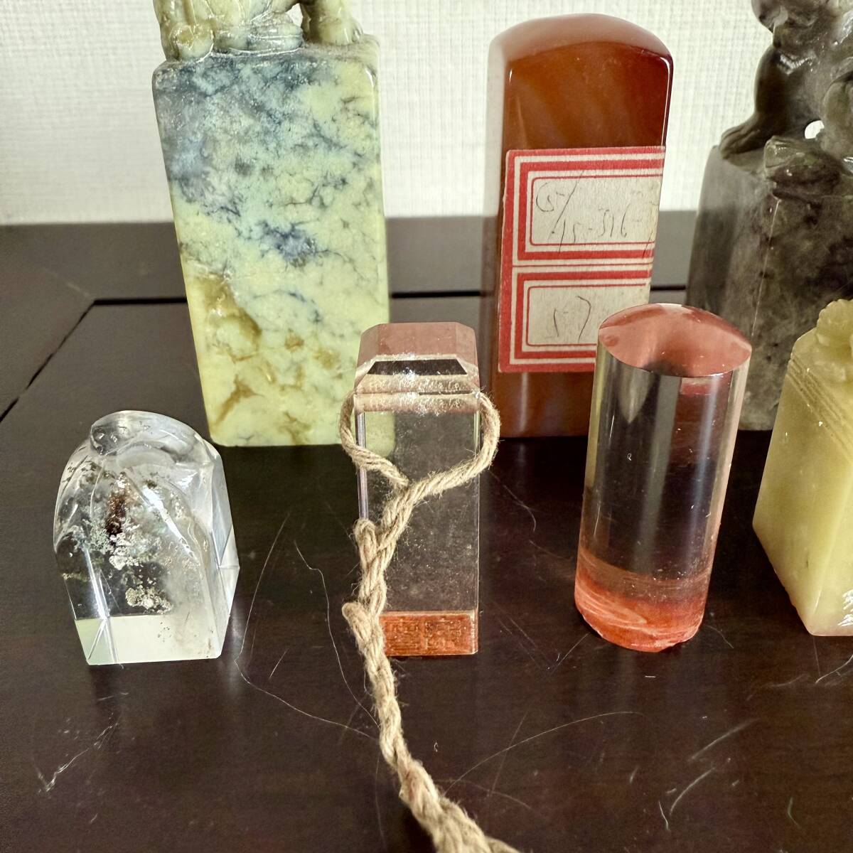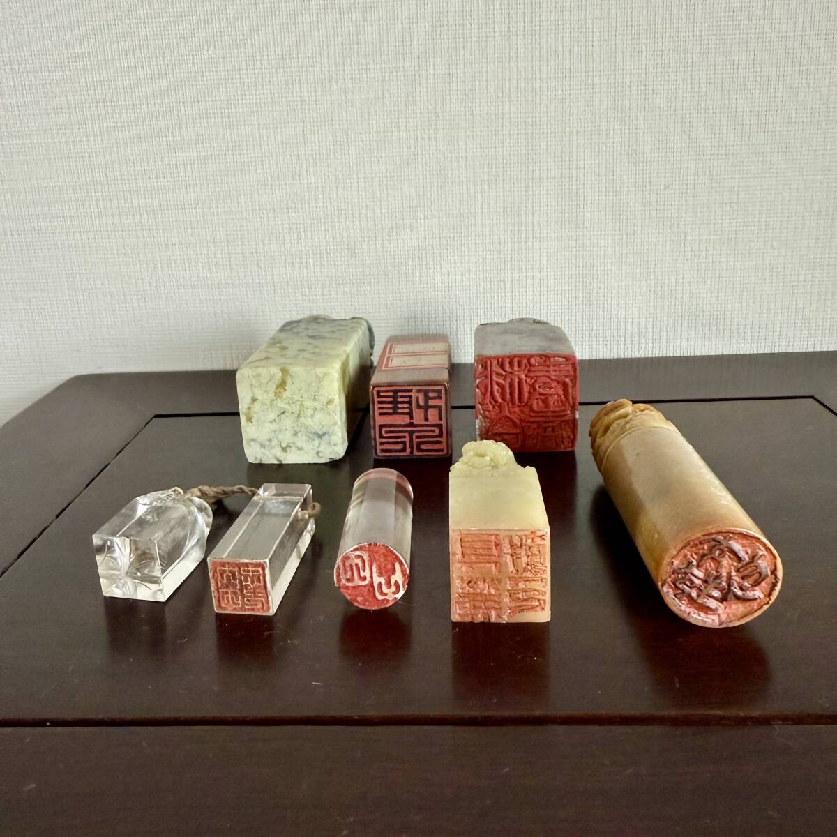 ◆ 中国美術 書道具 印材 8点 水晶 瑪瑙 寿山石 彫有 文字入り ◆