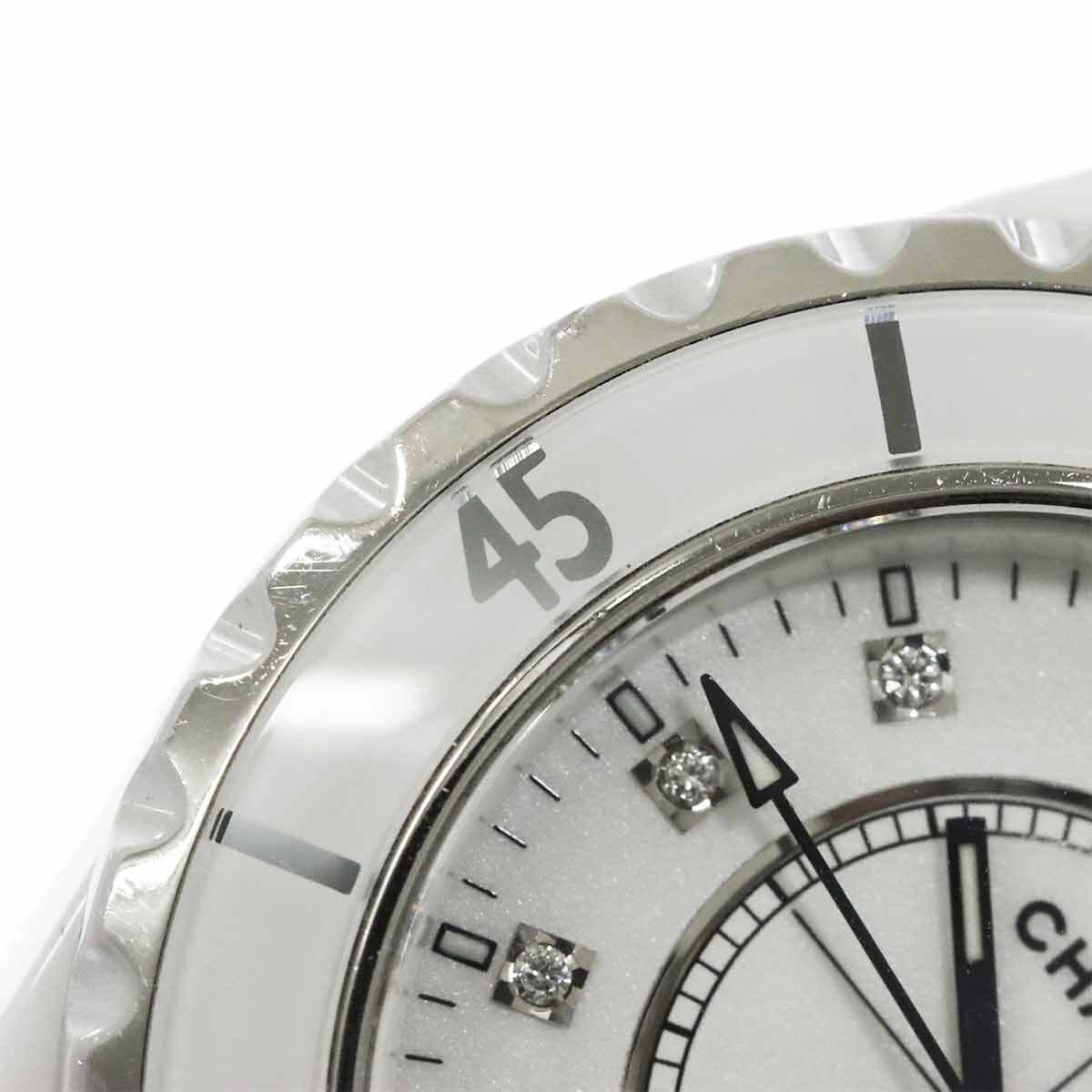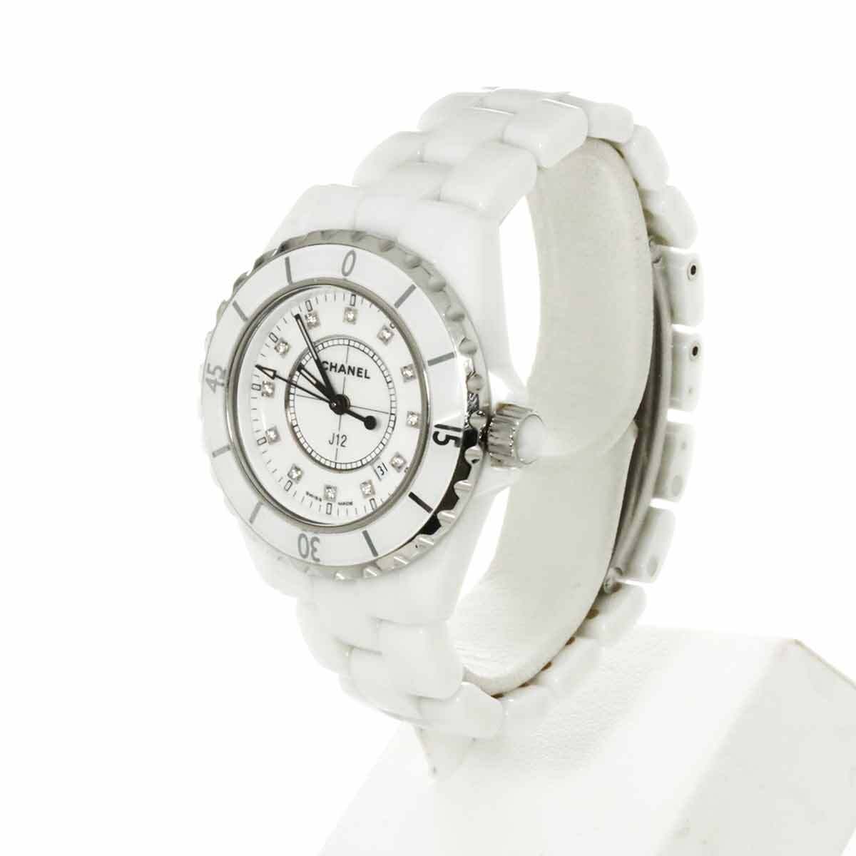商品概要 | シャネルから、大人気のレディース腕時計“J12”です。傷が付きにくい硬質なハイテクセラミックを使用。インデックスに12Pダイヤを配し、シンプルながらも高級感の溢れる逸品となっております。 |