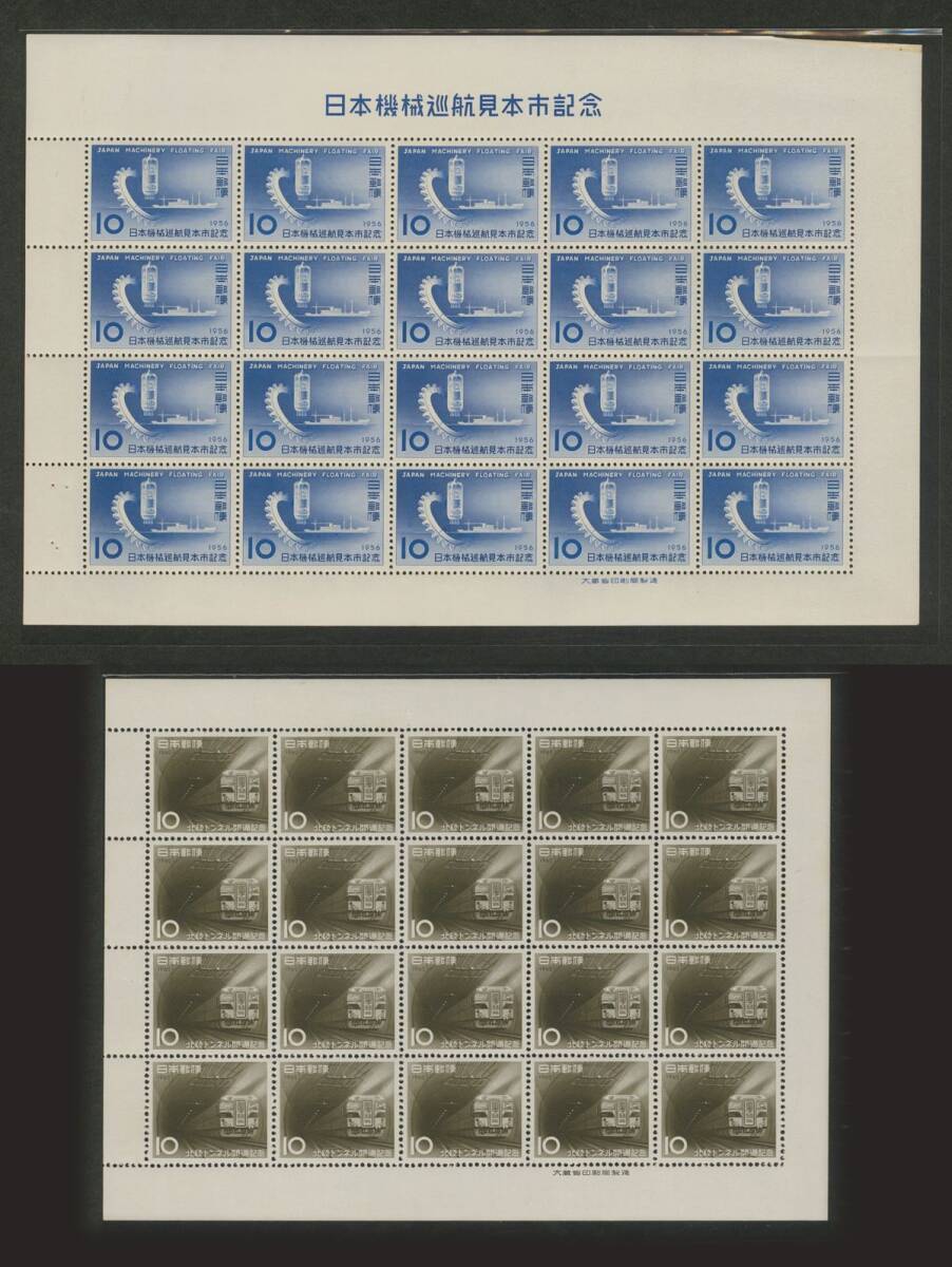 日本切手 記念切手 2種(巡航見本市、北陸トンネル)10円 シート 額面400円 未使用 巡航見本市折目有( 右上、中央)