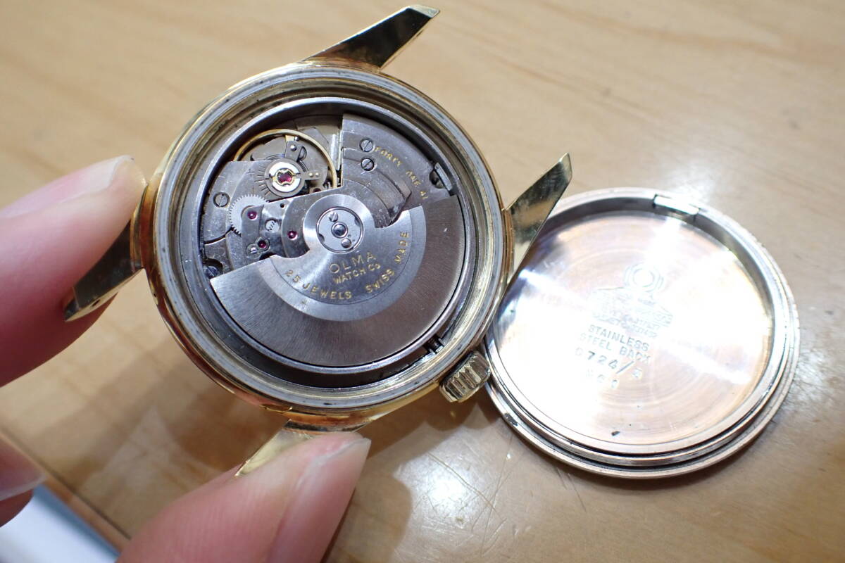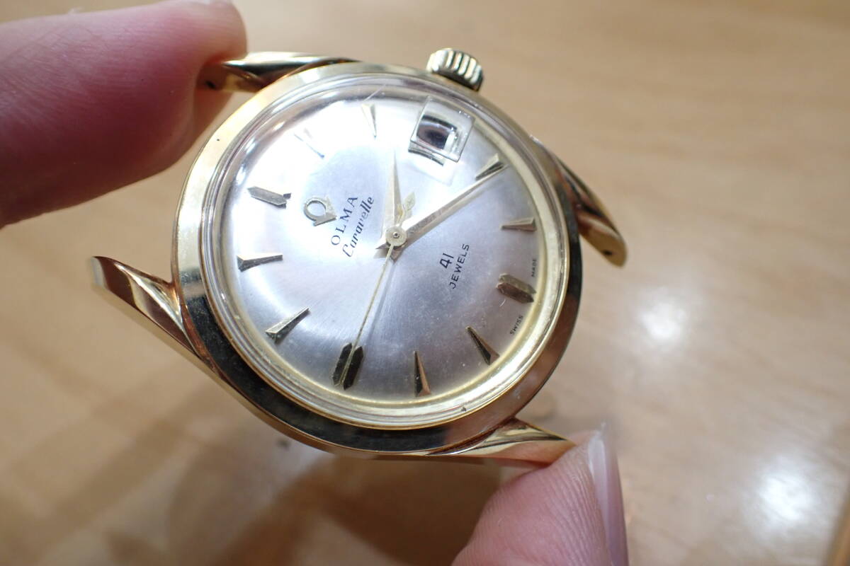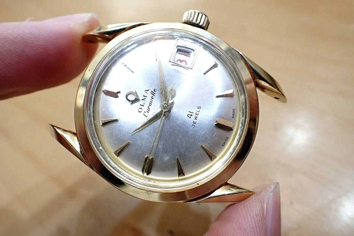 オルマ/OLMA 41石/スーパーコンプレッサーケース 裏メダリオン 自動巻き メンズ腕時計です。 スイスのオルマの貴重な自動巻き、メンズ腕時計です。 時計店の在庫で、ベルトはありませんが、長期保管品です。 風防や裏蓋などの保管キズ程度で、全体的には綺麗です。 他写真でご確認ください。 振っても動かないようです。 オーバーホール前提でジャンクでお願いします。 ケースサイズ:約34mm !オークション終了後、24時間以内に「お取引を始める」ボタンをクリックして、必ず取引をスタートして下さい。 取引のスタートが無ければ、削除させていただきます。 必ず厳守してください! 「新規ID」「直近で悪い評価が多い方」のトラブル(イタズラなど)が非常に多いです。 当方が、お取引に支障があると判断したID(特に新規ID)は削除します。 ●ジャンク品と記載の物の商品到着時の動作保証はありません。 ●付属品等は、写真に写っているものですべてです。 | ||||