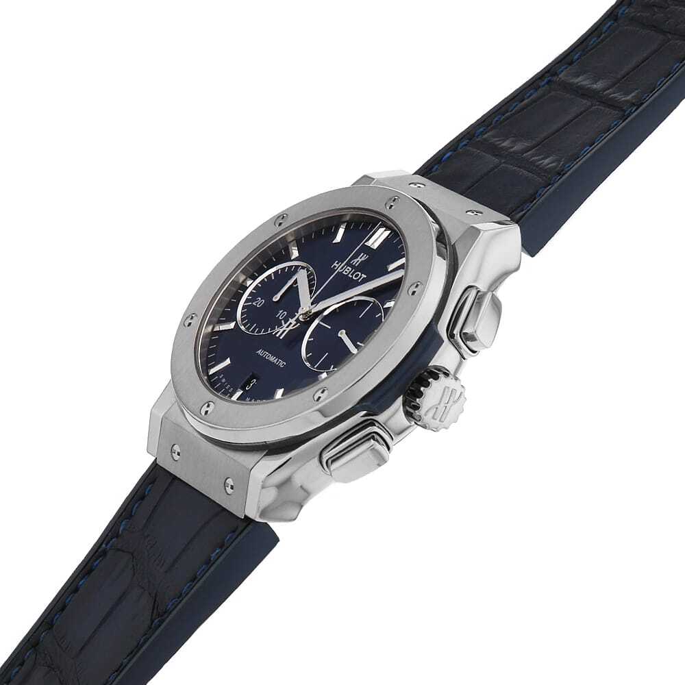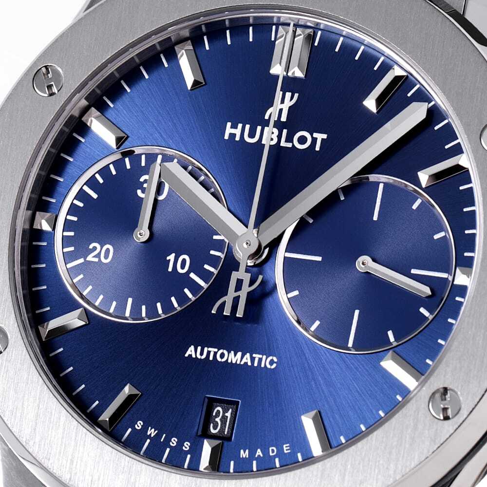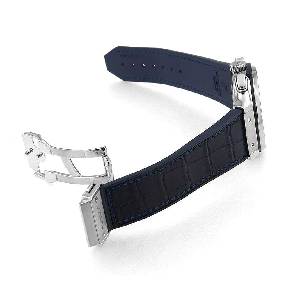 | モデル情報 | 大ヒット作「ビッグバン」から始まったウブロの新しいコンセプトフュージョン。こちらは2015年に発表されたブルー文字盤です。端正なエレガントさとスポーティーな雰囲気を両立しています。クロノグラフムーブメント「HUB1143」搭載。パワーリザーブ約42時間。50m防水。 |