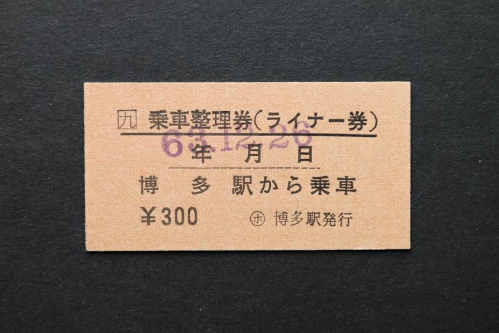 JR九乗車整理券 (ライナー券) 博多駅 ¥300