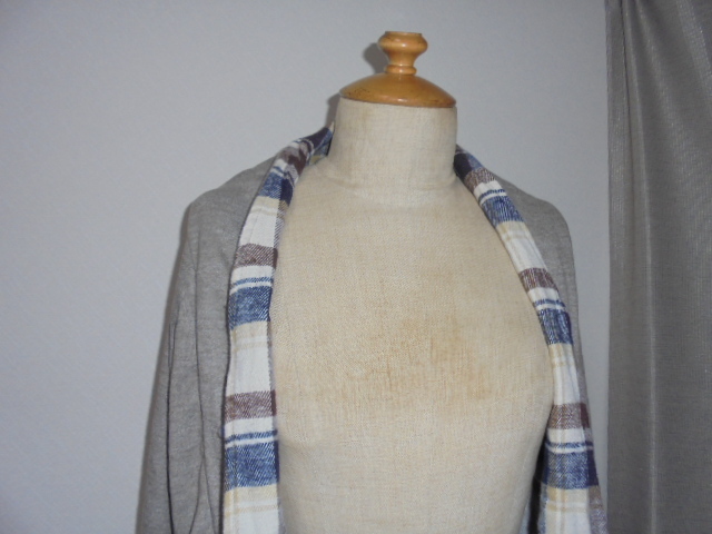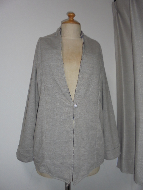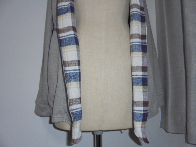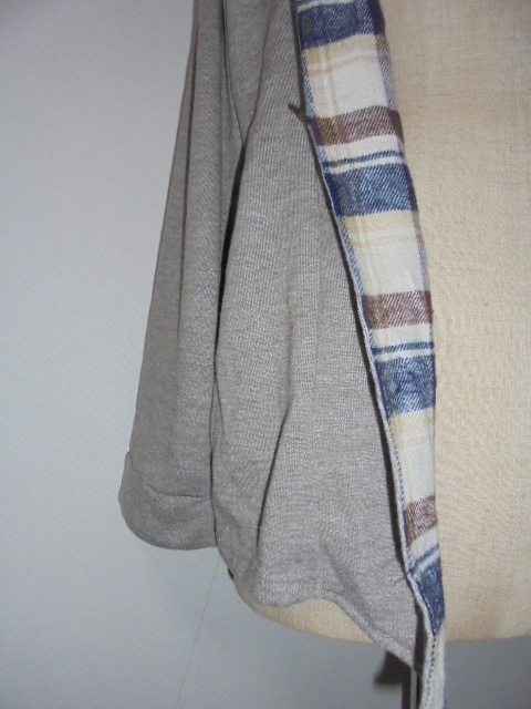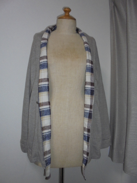 未使用品。霜モカ茶比翼部裏チェック切替裏毛カーディ