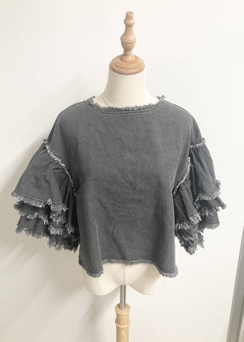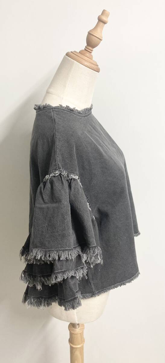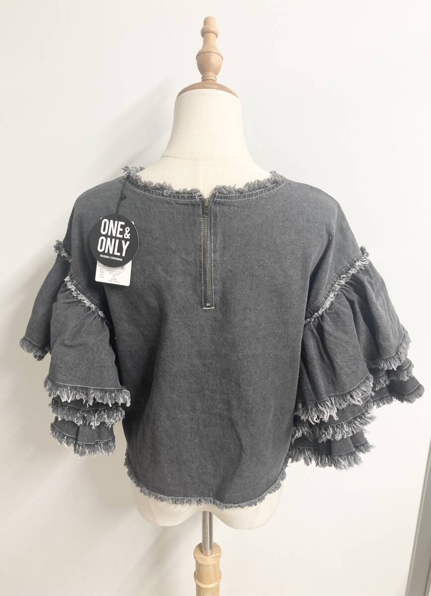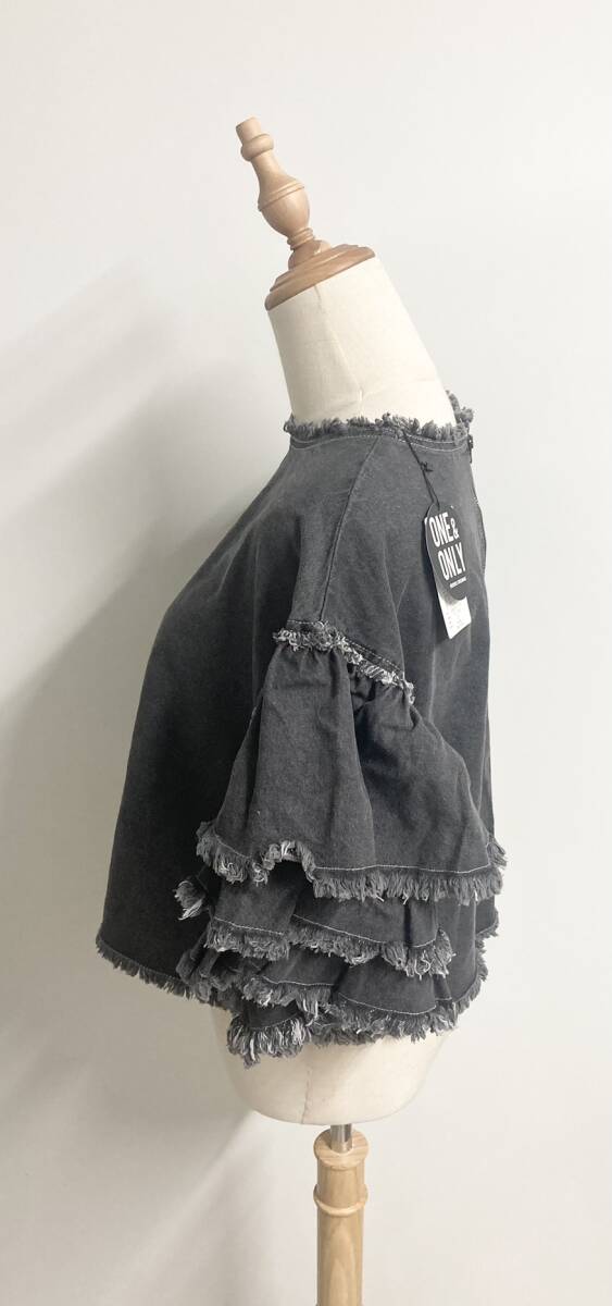 | ☆ファッション☆ ◆未使用◆ RODEOCROWNS WILD BOWL ロデオクラウンズ アームフリル デニムトップス | |||