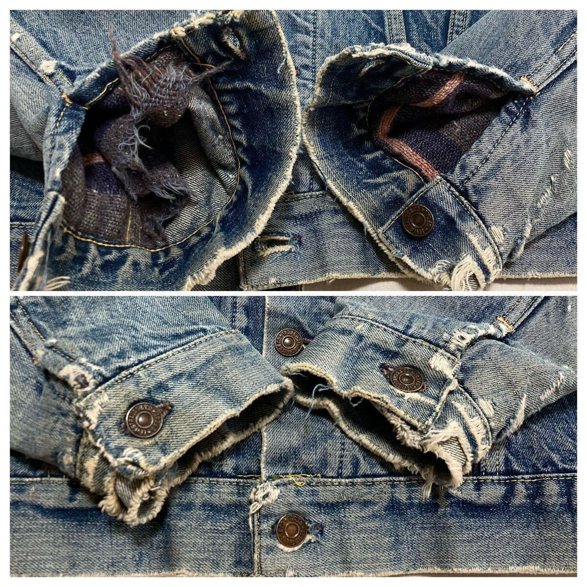 その他、使用感や擦れ、解れ、汚れ等の細かいダメージも多数あります。着用は可能ですが、ダメージのあるヴィンテージ品ですので、ご理解の上、神経質な方はご入札を控えて頂きます様お願い致します。