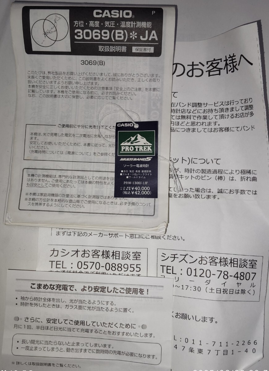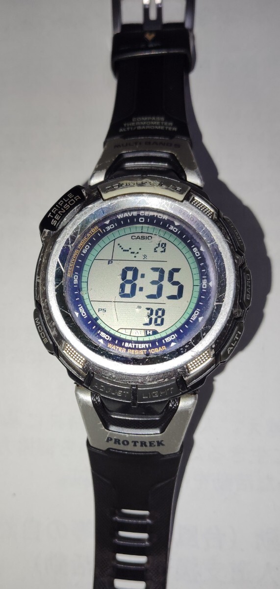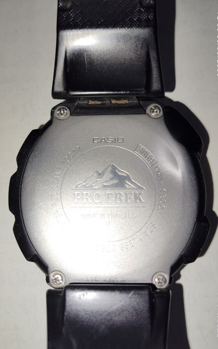 中古 カシオ プロトレック PRW 1300Jです。箱 取説など購入時の物はあります。実際、登山で使用していましたので傷、汚れはかなりありますが、見え方や機能は問題ありません。送料は、定形外郵便(補償なし)でよろしければ無料です。ご理解いただけれ入札して下さい。