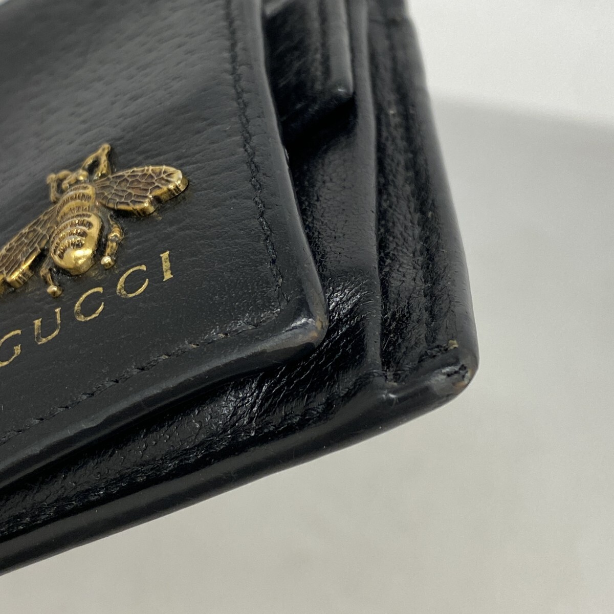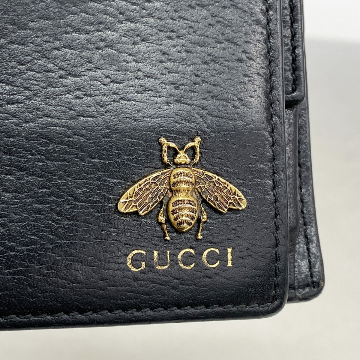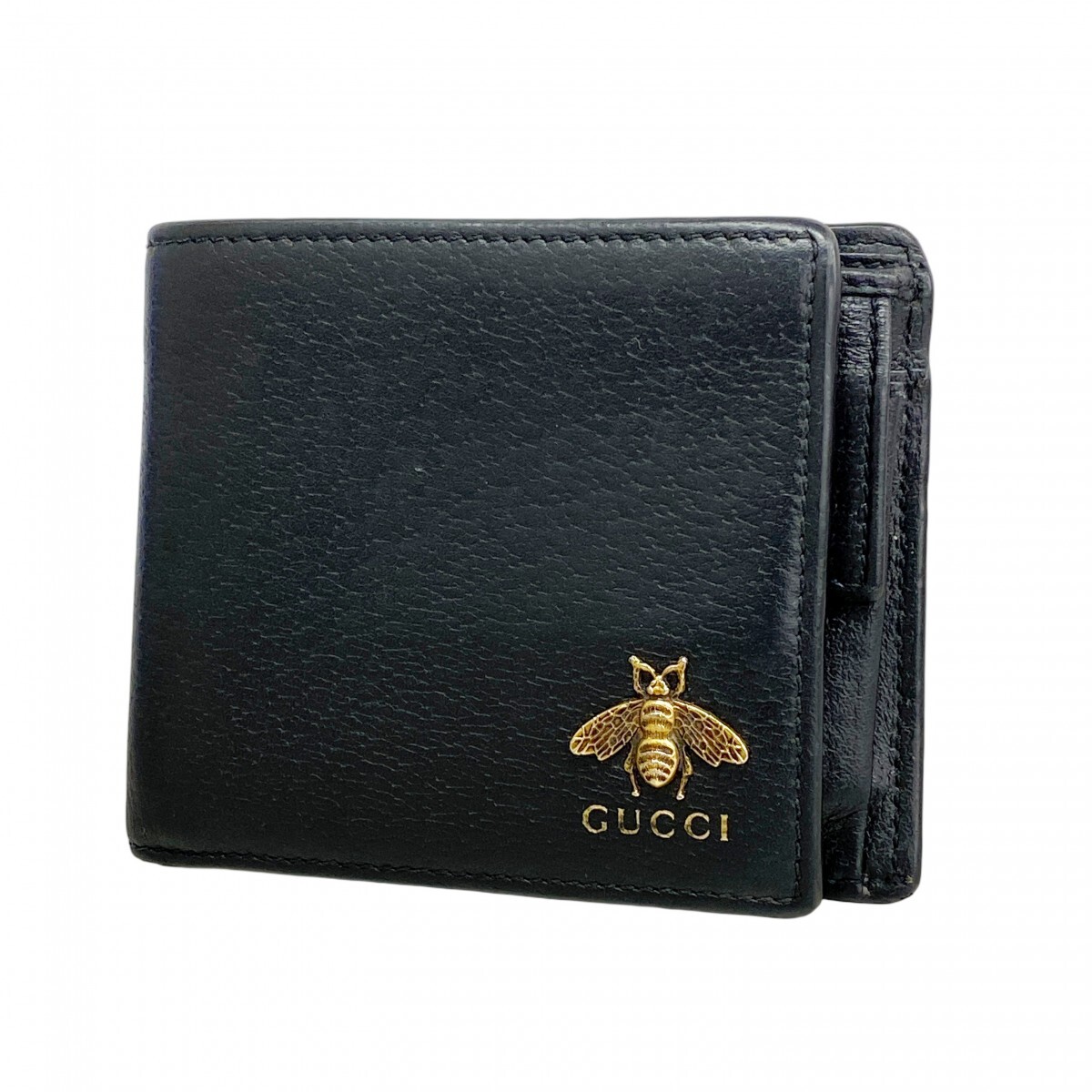 【5ie6238-h】グッチ 財布 ビー 522915 レザー ブラック ゴールド金具【中古】メンズ