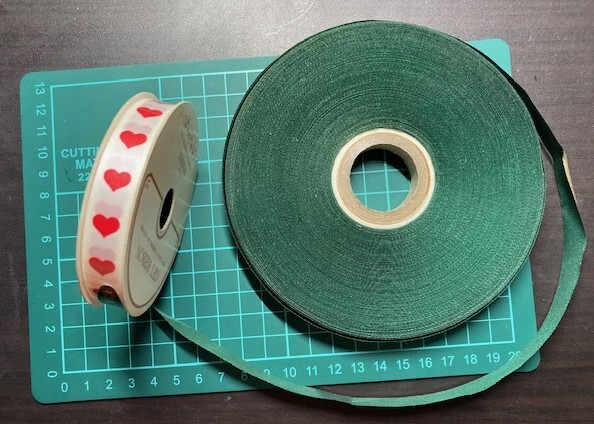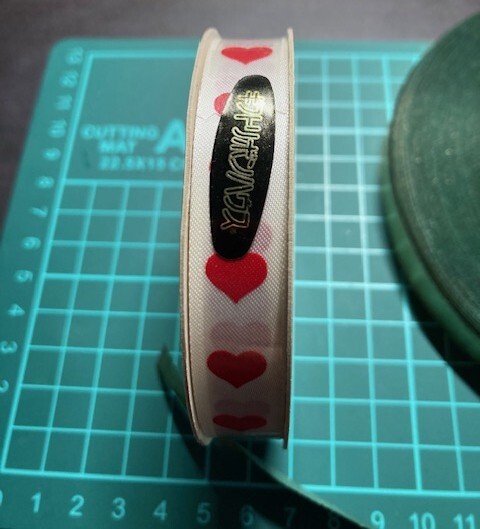 ハート柄は未使用、ゴールド・グリーンのリボンは少し使いました。
