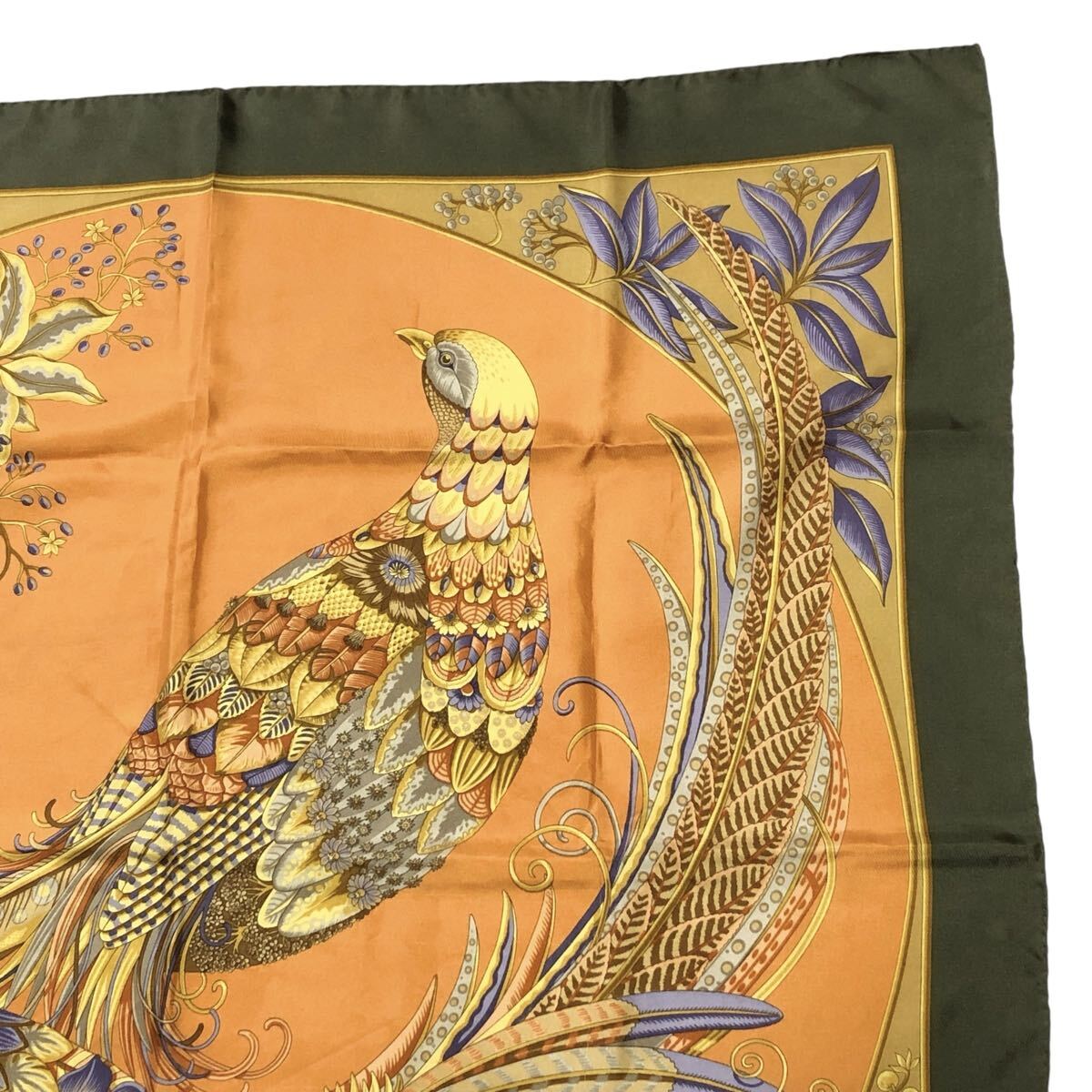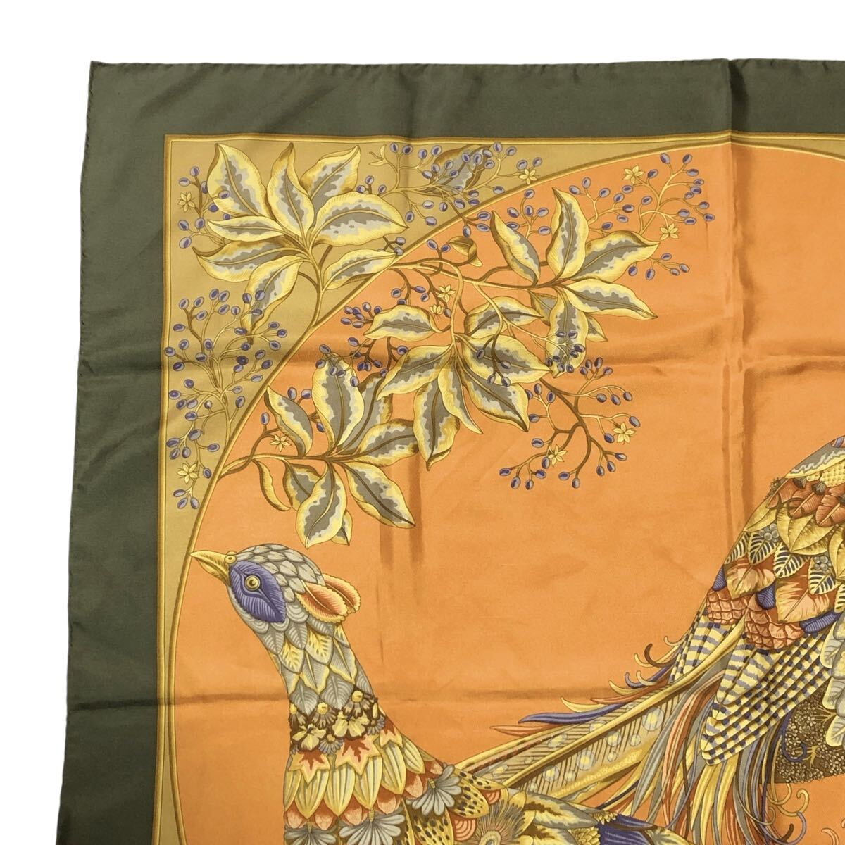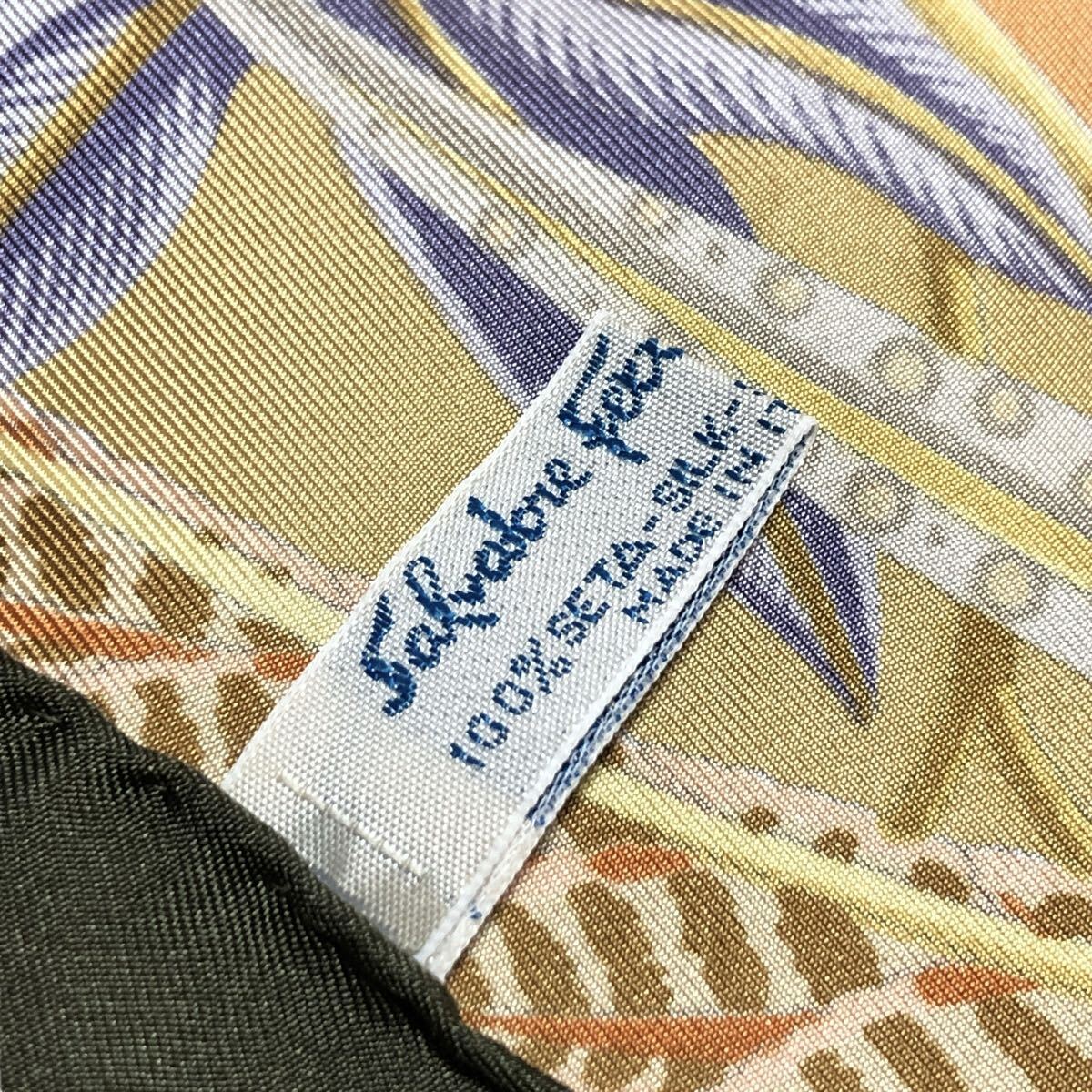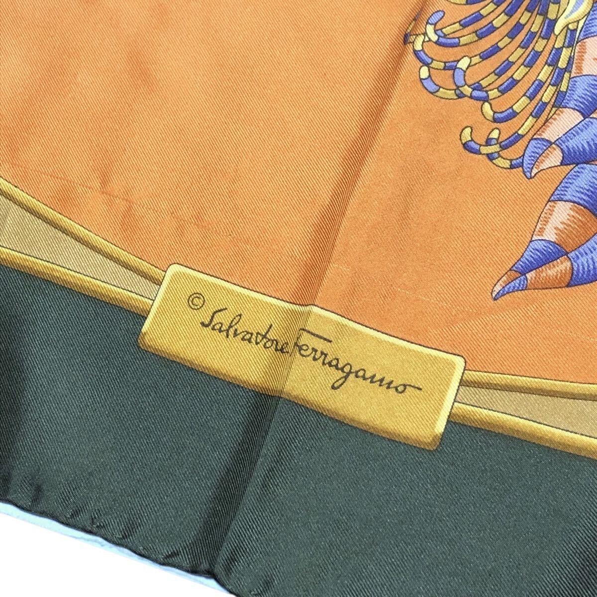 良品【フェラガモ】本物 Ferragamo 孔雀模様 鳥 大判スカーフ 88cm×86cm シルク100% ストール ショール マフラー メンズ レディース 伊製
