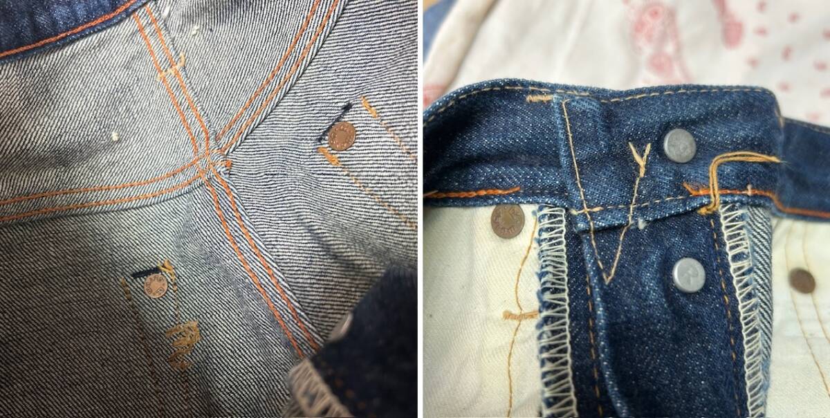 ●状態・・・USEDになりますが、丁寧に着られていた感じで、多少の着用感・裾の内側のチェーンステッチに若干のステッチ飛び(着用には全く問題無いです)は見られますが、USEDデニムのいい風合いで、目立つ汚れやダメージなどは見られず、USEDを着られる方でしたら問題なく着ていただける、綺麗な状態だと思います。