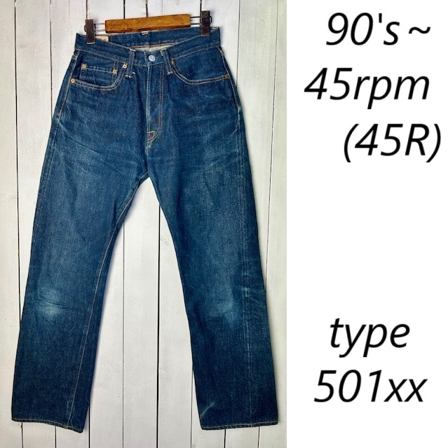 90s~00s 45rpm セルヴィッジ デニムパンツ 28 濃紺 日本製 オールド 45アールピーエム 501xxタイプ ストレート 赤ミミ XS程度 日本製 ●502