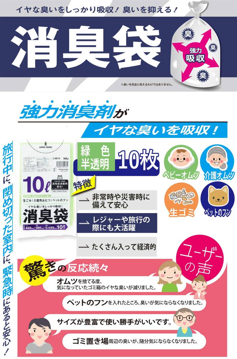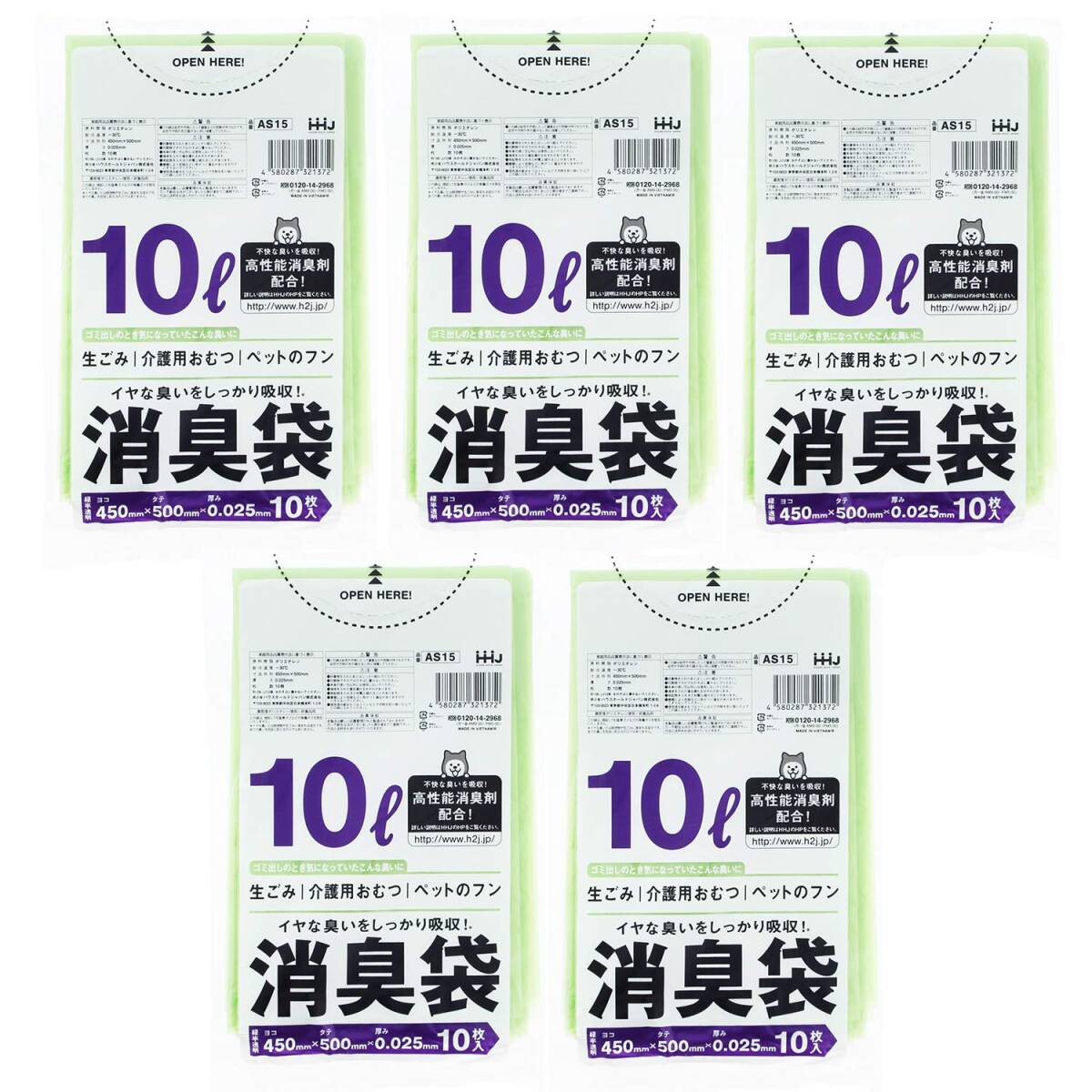 ハウスホールドジャパン ゴミ袋 消臭袋 サニタリー用 10枚入×5個パック グリーン 10L AS15