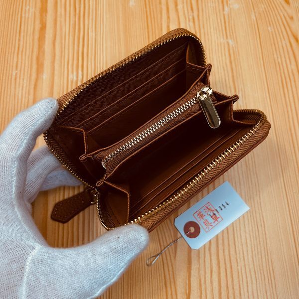 【浅草革具】ミドルウォレット コインケース イタリアンレザー ヌメ革 本革 牛革 新品 コンパクト財布 スマート財布 ブラウン(0)