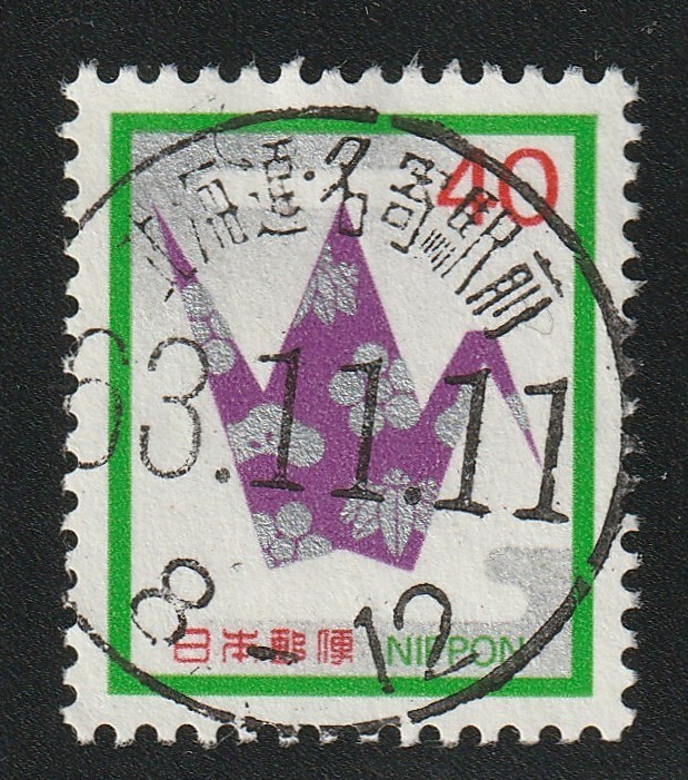 【満月 使用済 可読印】丸型印 第1次慶弔 慶事 40円 折り鶴 北海道・名寄駅前 63.11.11