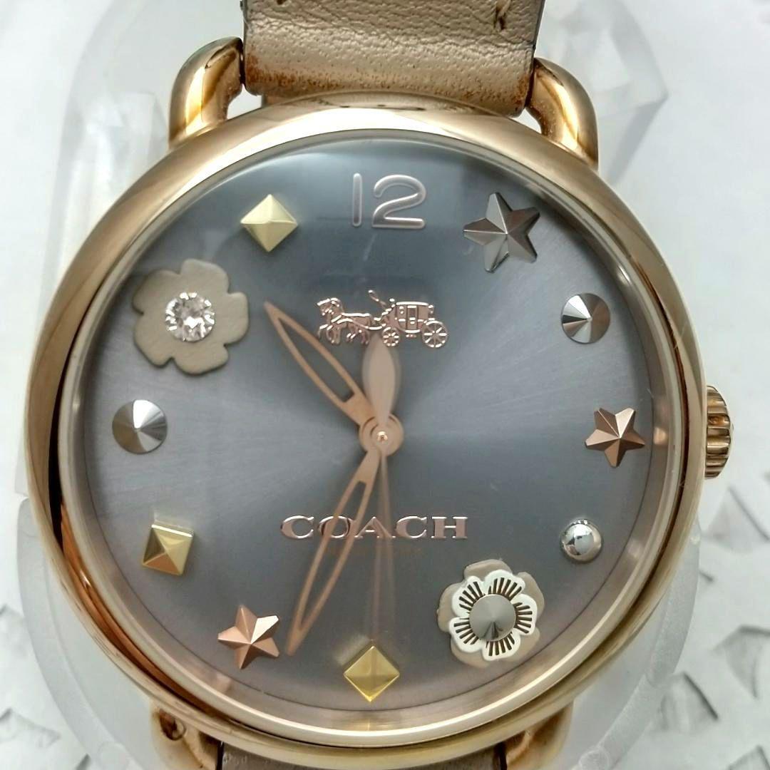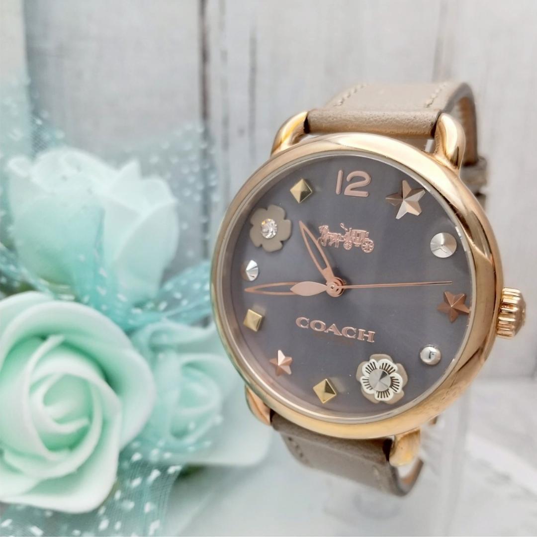 文字盤に花モチーフが飾られ馬車ロゴのある、コーチのかわいいレディース腕時計です!
