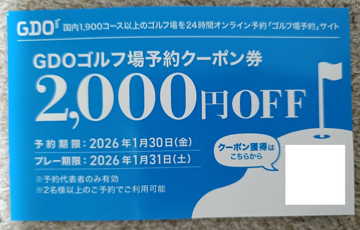 GDOのゴルフ場予約で使用できるクーポン券です(2000円Off)。
