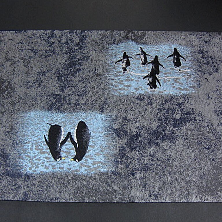 新品未仕立 西陣織袋帯です。上品なお色目のペンギンの意匠が織り上げられた袋帯です。ふと目を引くデザインです。大人のお洒落帯にぴったりの一品かと思います。単衣にも締めて頂けます。お出かけ、お食事、観劇、などにいかがでしょうか。織り上がったばかりのお品です
