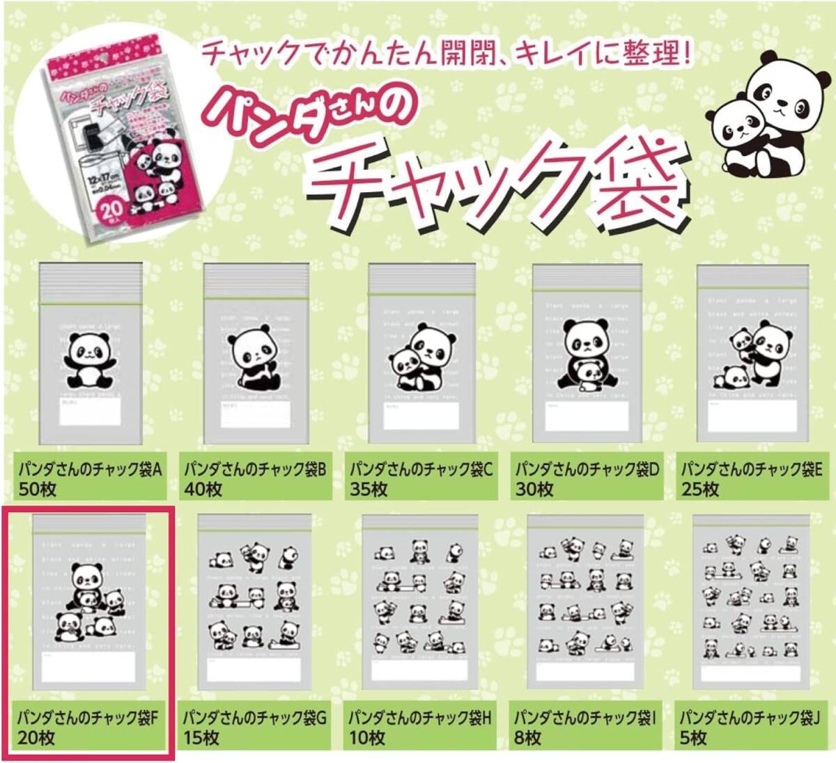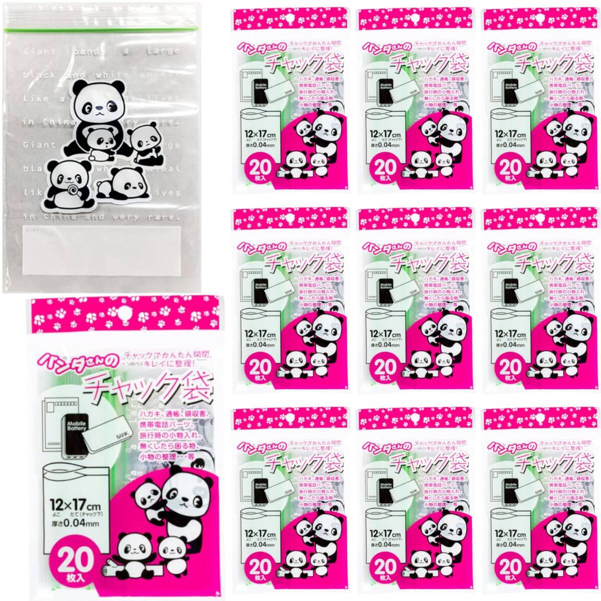 (株)コア チャック袋 パンダ柄 縦17cm×横12cm×厚み0.04mm ハガキ 通帳 領収書 小物収納 整理 ポリ袋 20枚入×10個セット K