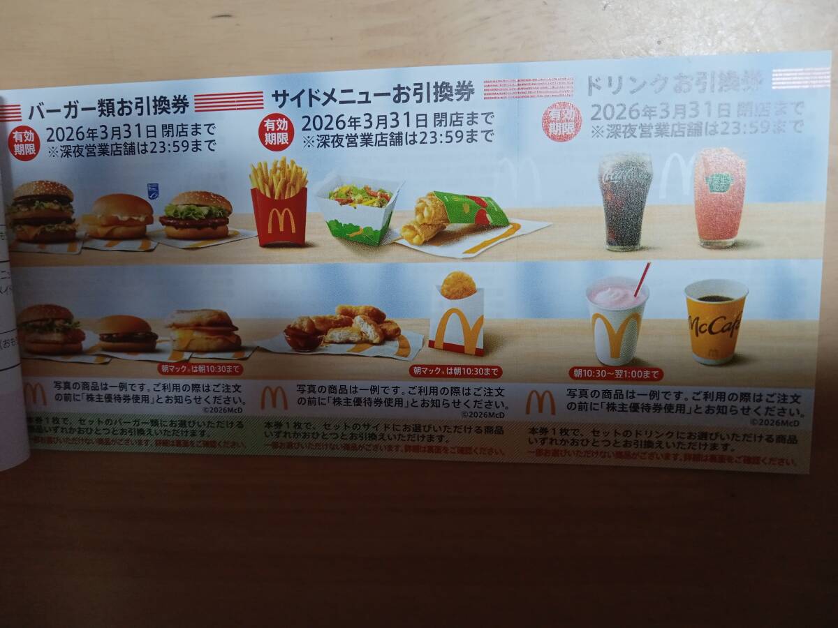 ◆【送料無料】 マクドナルド株主優待券 4冊◆