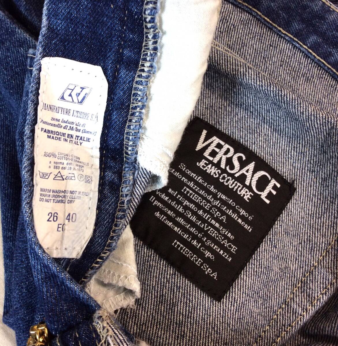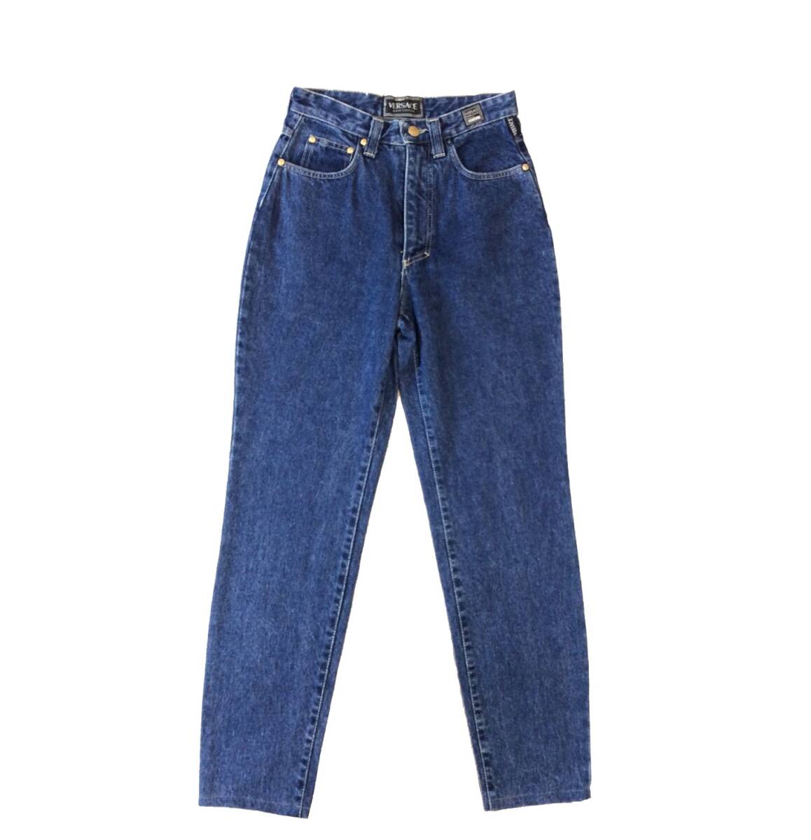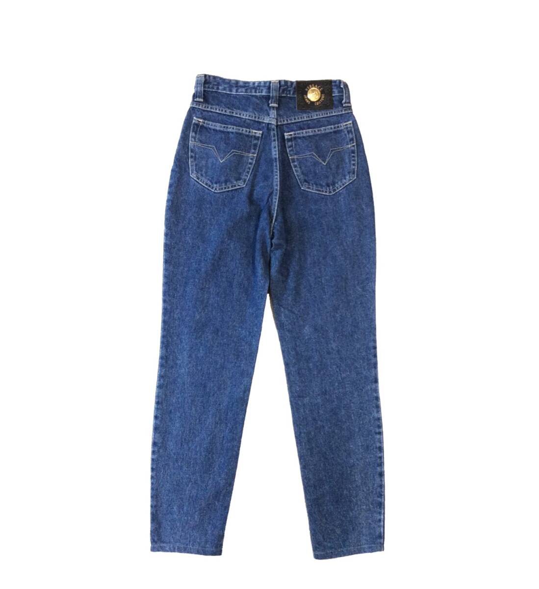 VERSACE ヴェルサーチ デニム パンツ ジーンズ メデューサ テーパード ネイビー イタリア製 レディース W26