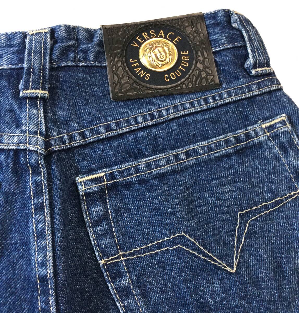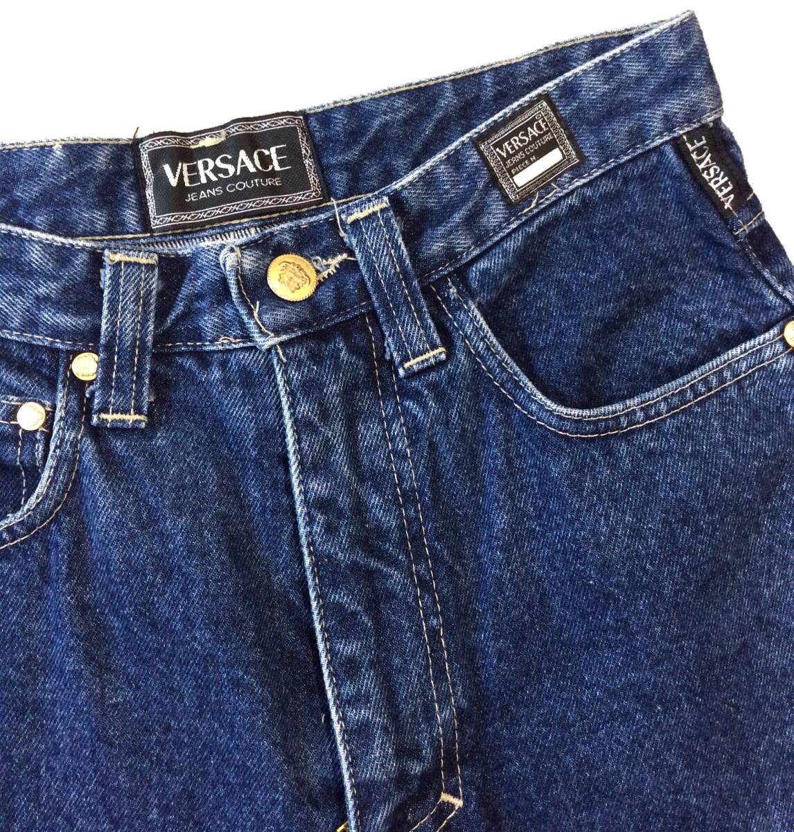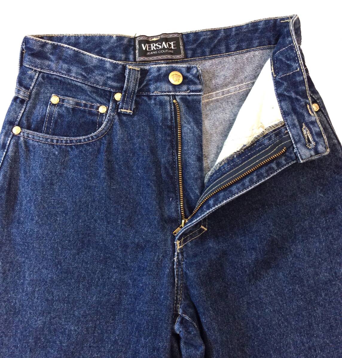VERSACE ヴェルサーチ デニム パンツ ジーンズ メデューサ テーパード ネイビー イタリア製 レディース W26