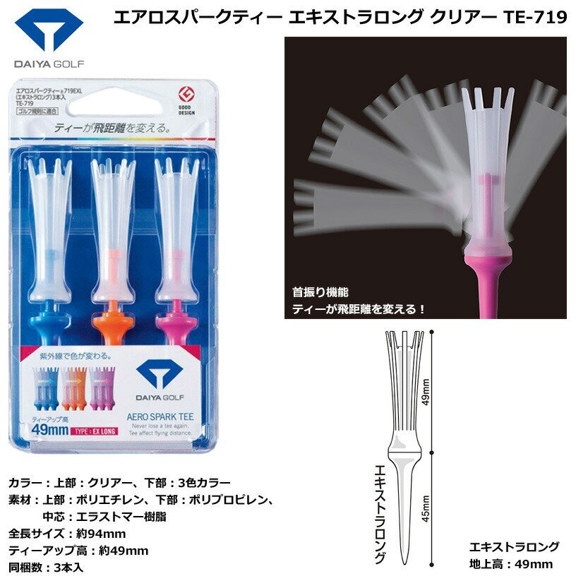 ダイヤゴルフ エアロスパークティー エキストラロング クリアー TE-719[30622]