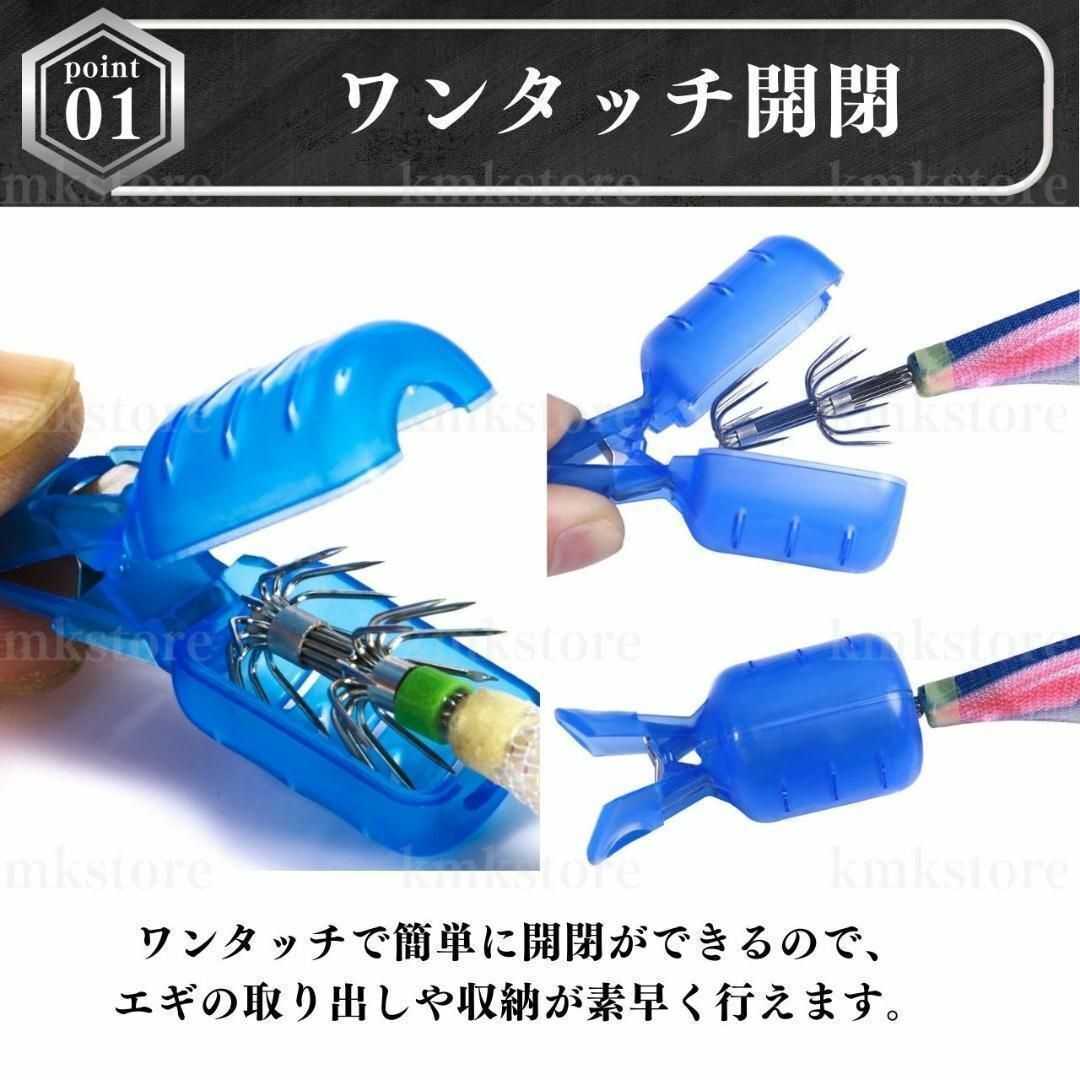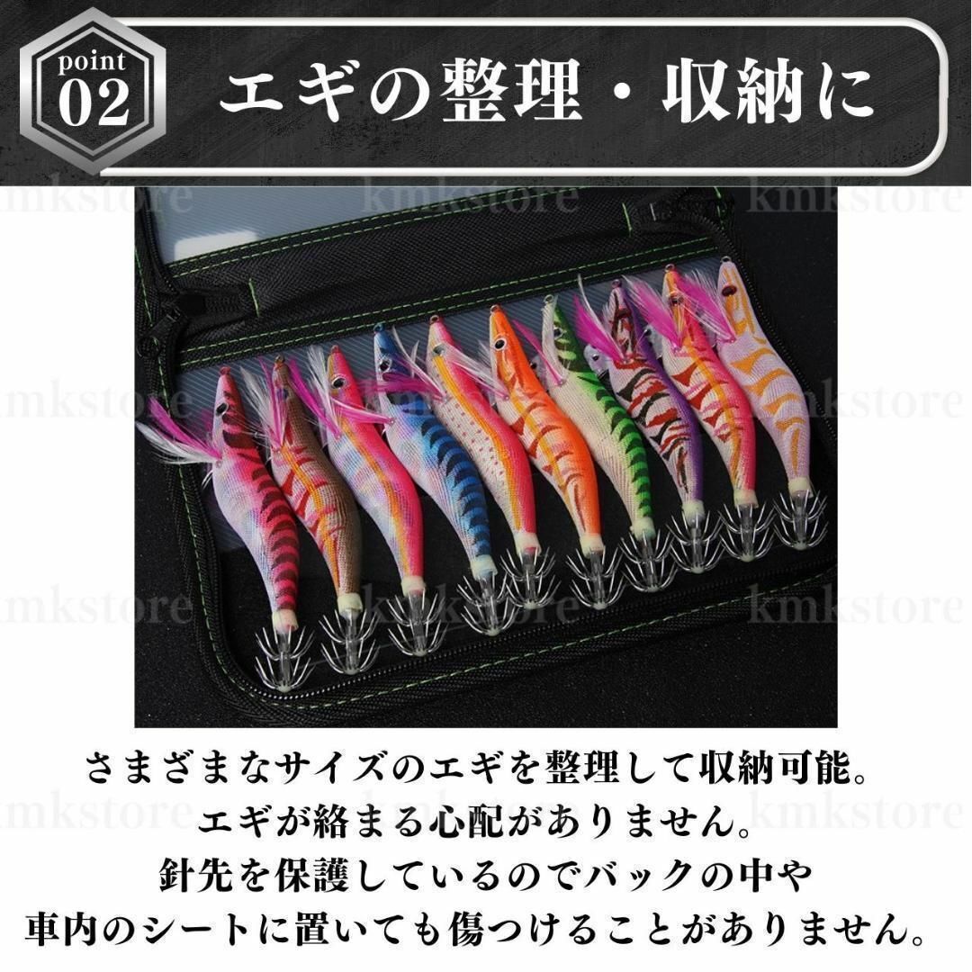 エギ(ルアー)を安全かつ整理して収納し、釣り場での素早いエギ交換をサポート。