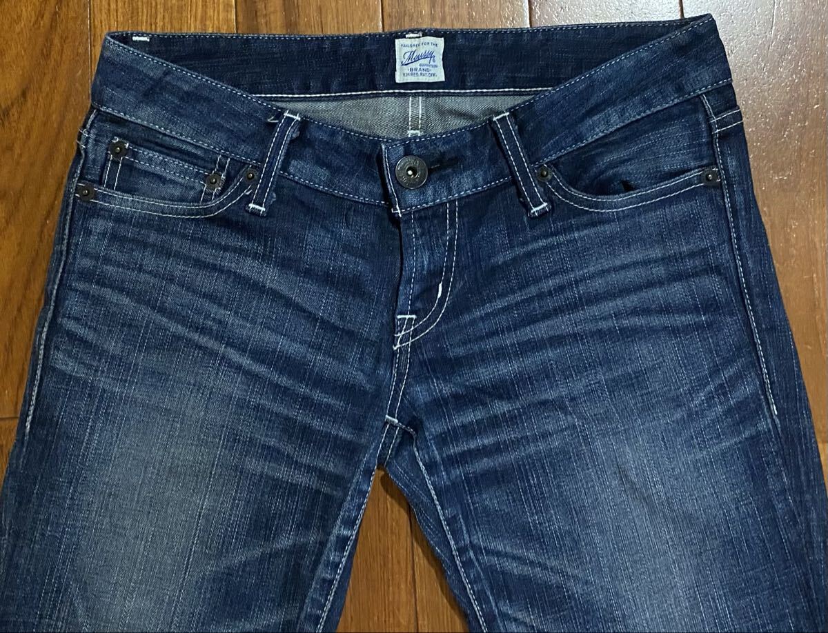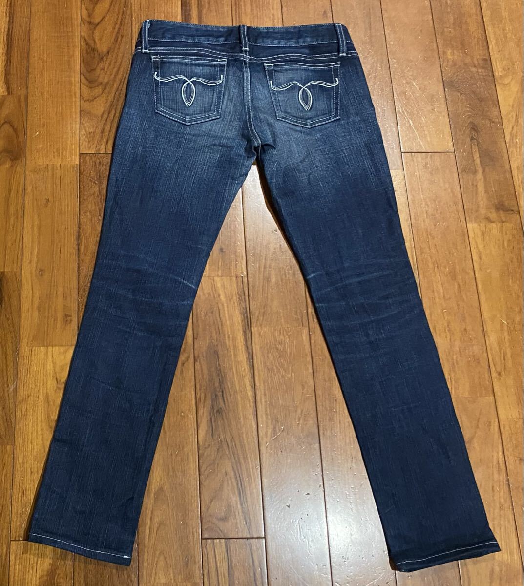マウジーのストレッチスキニーデニム(ジーンズ)、NO.0102AC12-7680です。色はインディゴブルーです。USEDで裾直ししておりますが状態は良いです(10段階中8程度)。ジッパーフライです。生地はストレッチ入りでコットン98、ポリウレタン2%です。正規品です((株)バロックジャパンリミテッド、日本製)。サイズはW26でウエストは重ねずに平置きで約74cm、ヒップ約86cm、股上約16cm、股下約70cm、股下15cmのふともも部分約42cm、裾まわり約29cm、重量約420gです。発送はゆうパケットポストになります。
