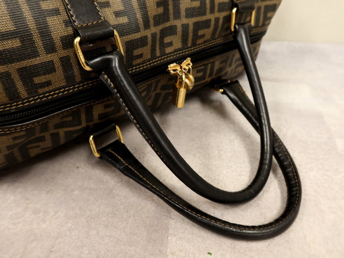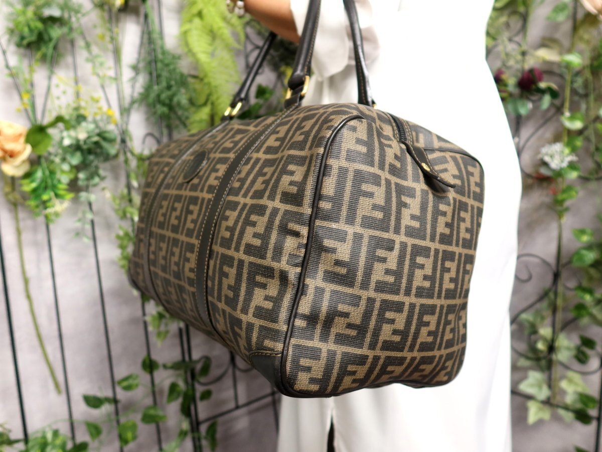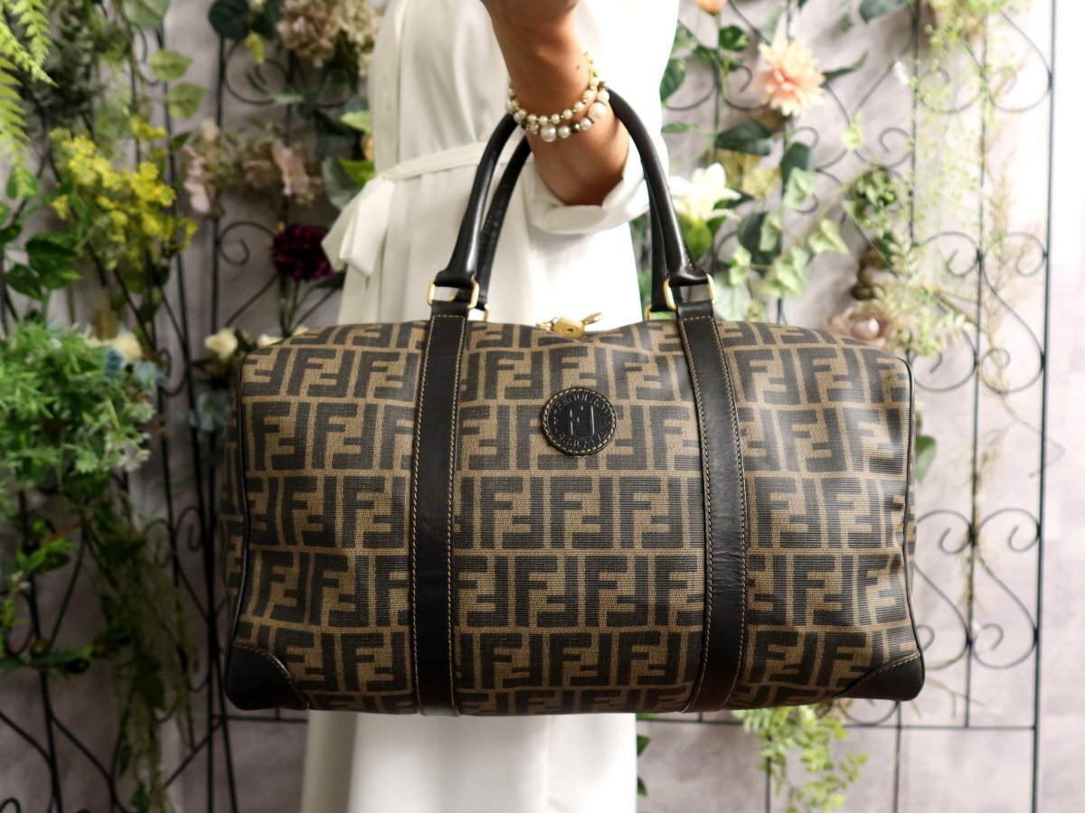●超美品●FENDI フェンディ●ズッカ●PVC カーフ レザー 本革●ボストン バッグ●茶 黒●ゴールド金具●腕掛け●収納 かばん●Js61017
