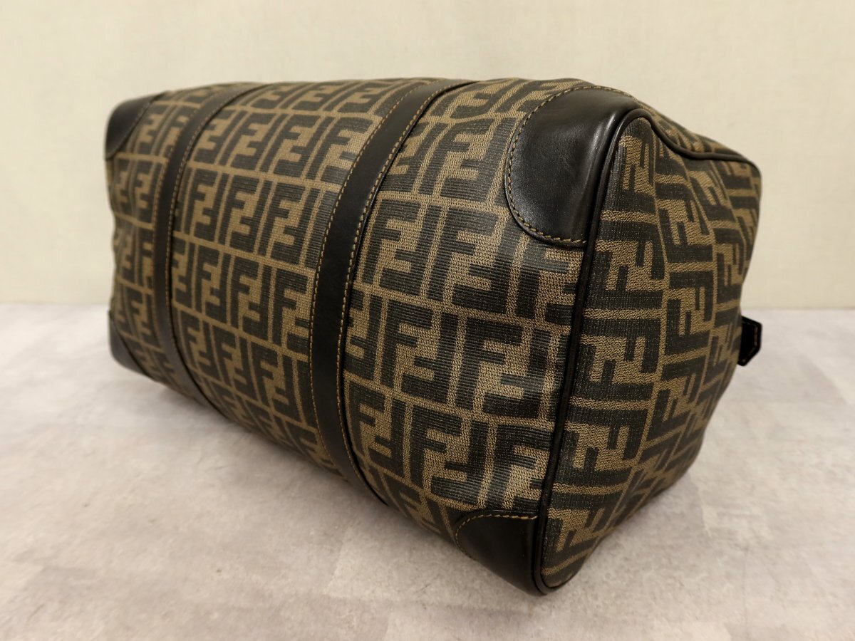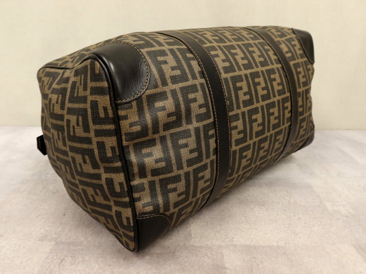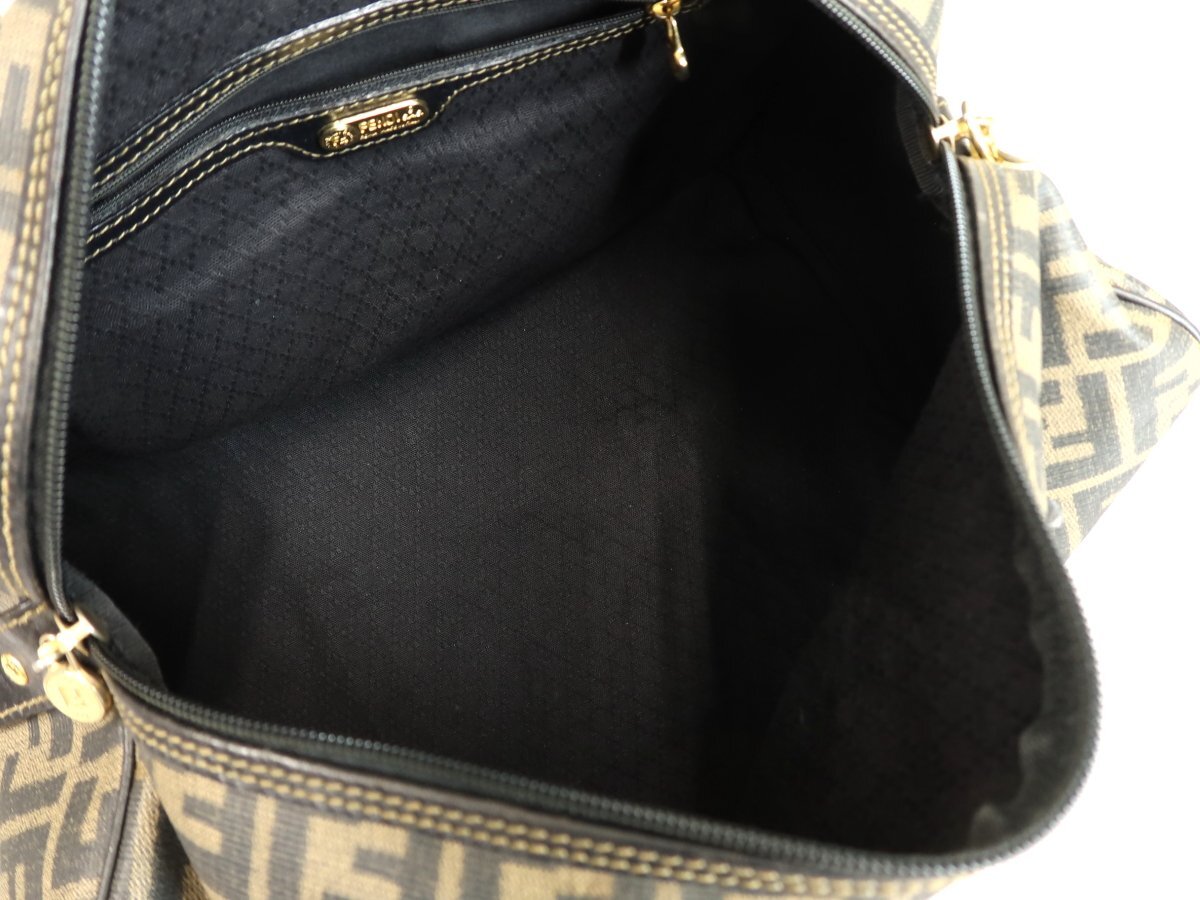 ●超美品●FENDI フェンディ●ズッカ●PVC カーフ レザー 本革●ボストン バッグ●茶 黒●ゴールド金具●腕掛け●収納 かばん●Js61017